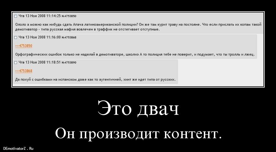 Привет, аноны. Я тут чёт почитал ваше нытьё - там ололо азазаз жизнь проёбана, дети вернулись, тёща к другому ушла, жена из школы одни ебиницы с минусом носит, и вообще мы просрали всё давно и страна у нас говно. Да-да-да.