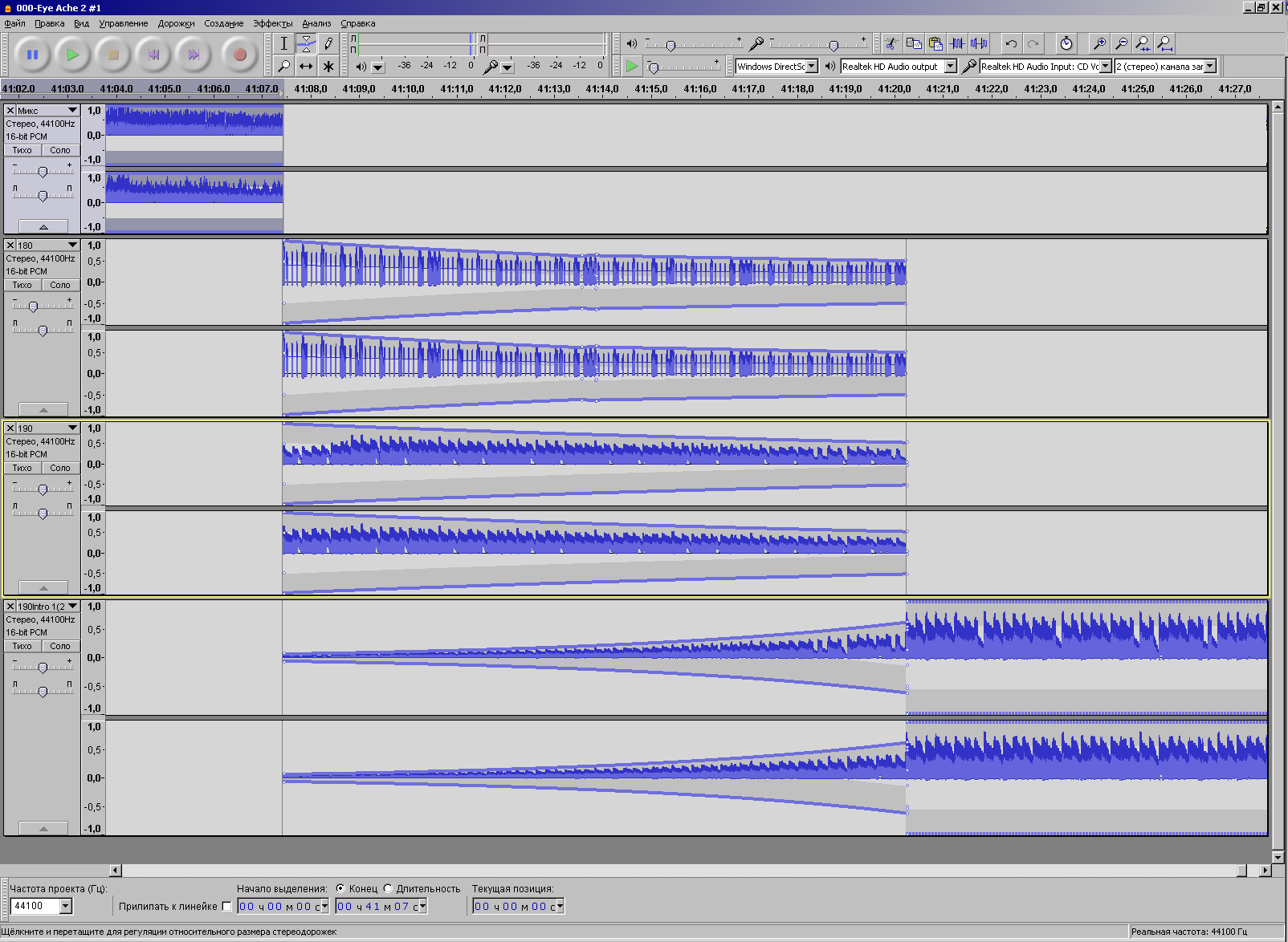 >>13301 Кстати, чем бы ни сводил, сведением я это лишь сквозь пальцы называю, ибо треки копятся разношерстные, с разным BPM и стилем, поэтому где как получается (это всякий дабстепчик с друманбасом отличично сводятся). Иногда более-менее можно раскорячиться при сведении MOD и XM, повыдёргивав в трекере нужные семплы на начало и на хвост (например ударные или басс линию), собрав потом франкенштейна где-нибудь в sound forge. Так нахлёст получается более гладким. Труднее работать с "отрендеренными" треками типа mp3, поэтому иногда махаю рукой и свожу в раскоряку, либо тупо пускаю трек после окончания предыдущего. Чито поделаешь десу