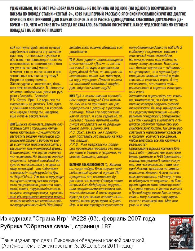 Конец 2007 и весь 2008 Вот тут-то все и начало идти по пизде. Борда начала страдать от того, чем она всегда гордилась - от винов. Именно из-за винов о борде узнало столько быдла и школоты. Начиная от ТВ передач про молодежные субкультуры, заканчивая новостями про анона, в очередной раз затроллившего какой-нибудь сайт/мероприятие/медийную личность. И в итоге все пошло по пизде. Сначала по всем тредам начали летать колобки с поняшами и аниме-рачьем, а закончилось тем, что нулевая была завайпана/засагана практически 24/7. "Есть одна тян", "Как омежке найти тян", "Хосспаде, как же хочется тяночку" и пр. пиздострадальческое говно пошло именно с этого года. Правда, справедливости ради, его все равно было меньше, чем сейчас, но один хуй этого было очень много (особенно учитывая то, что шинов и просто нормальных тредов становилось все меньше).