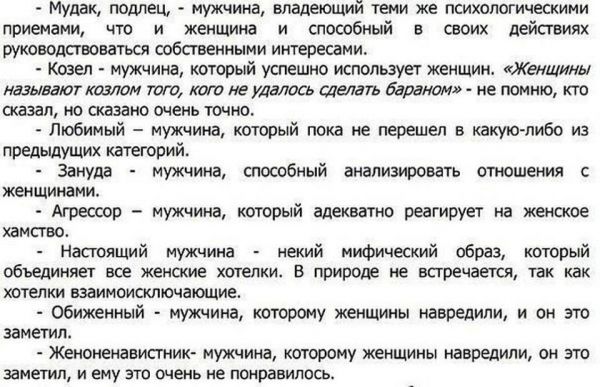 Большинство мужчин не хотят "независимую, раскрепощенную" женщину. Это эвфемизм, обозначающий скандальную суку, которая думает, что все ей должны. Дурачки с пеной у рта будут доказывать обратное, на то они и дурачки, чтобы не понимать суть происходящих явлений. Мужчины! Женщины любят тех, кто добивается желаемого; тех, кто не относится серьезно к женским закидонам, а в женщине видит женщину, а не мужика в юбке. К задротам женщины относятся как к собачьему дерьму, прилипшему к подошве. Для женщины задрот – не человек вовсе.