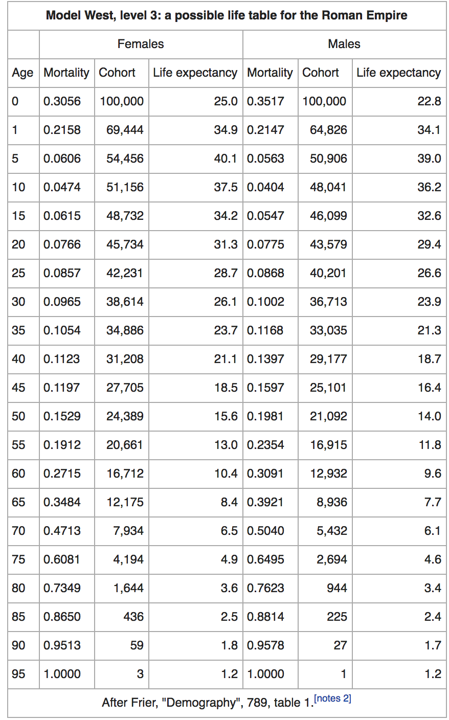 >>71138 >На таблице видно Ты траллишь? На твоей таблице написано "a possible life table for the Roman Empire" - ни указания периода, ни модели расчета, ни оснований для таких маня-теорий, вообще ничего. А против этого - вся статистика и мировая литература. Ты серьезно?