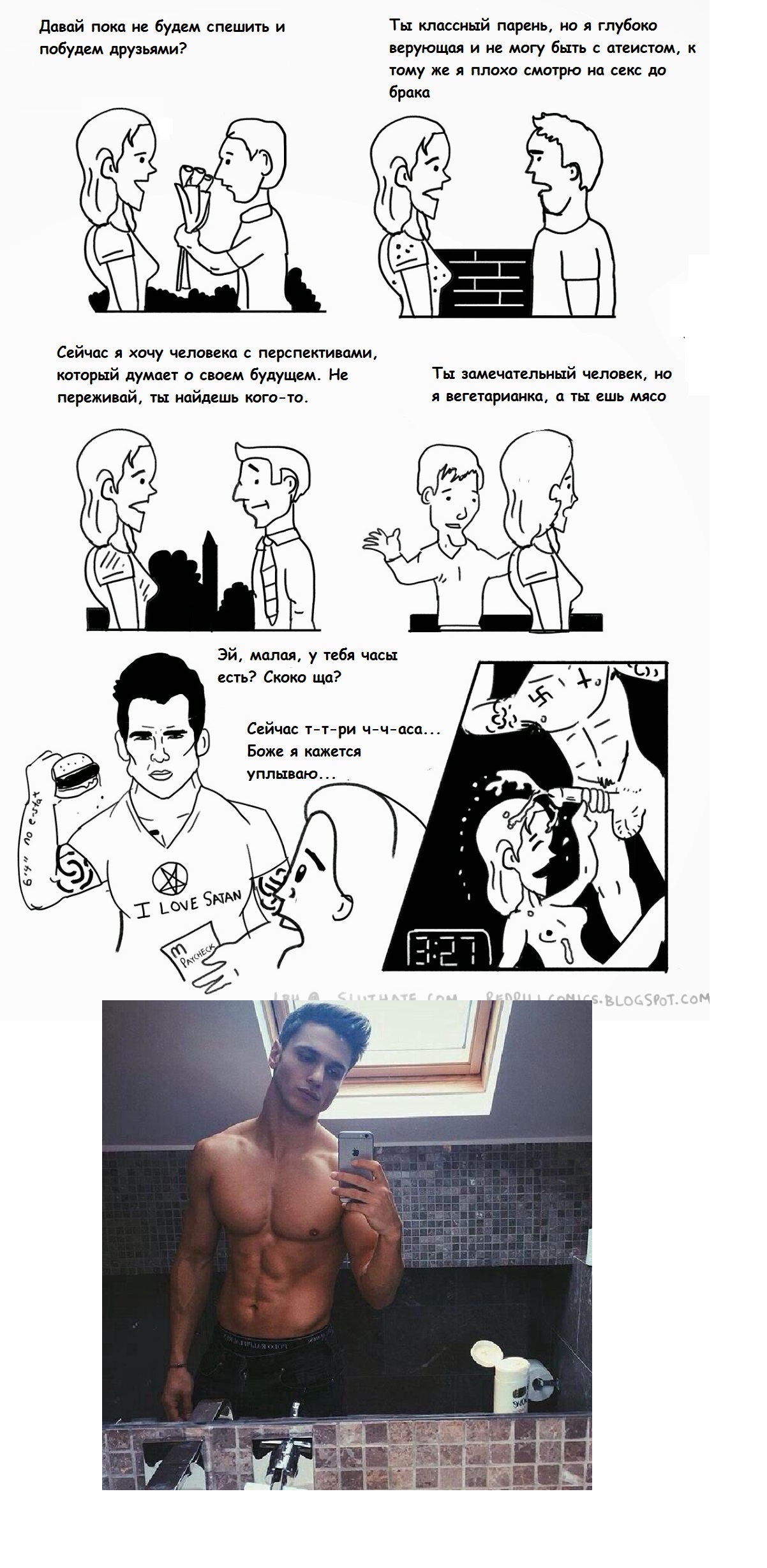 Причем я так сделал - стал предлагать встречаться почти всем подряд (ну кроме совсем модных чикуль и совсем всратых жирух). Решил что буду встречаться, водить кофе пить, знакомиться, прокачаю скилл в общении (да, стеснялся и этого) и буду на них тренироваться затаскивать в постель.