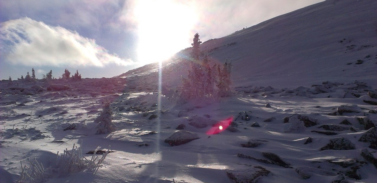 Кто ходил на Иремель, обычно идут по плато которое плавно поднимается вверх, где нет деревьев и сугробов. И после плавного подъема там до вершины остается буквально чуть чуть вскарабкаться. Мы же как мудаки пришли там, где скользко, снега толком нет глубокого, и подъем вообще сложный для этой простой, в сущности горы. Ветер штормовой поднялся, к тому времени. Ну и температура соответственно на самой горе где-то -25/-28.