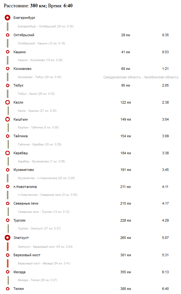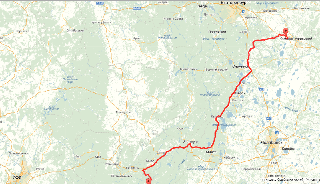 Когда я гуглил различные маршруты Екатеринбург-Тюлюк, все сервисы давали маршрут в объезд Миасса и Златоуста, но автомобилный навигатор повез через эти города. Жена к этому времени посапывала на пассажирском сиденье, а я ехал, радуясь светофорам и жилым домам, чувствуя себя в этих городах как в родных (после сотен киллометров по пустынной, ночной и снежной трассе).