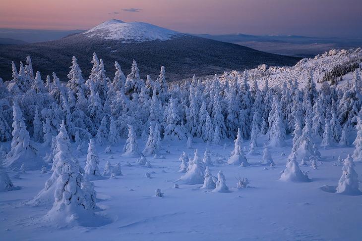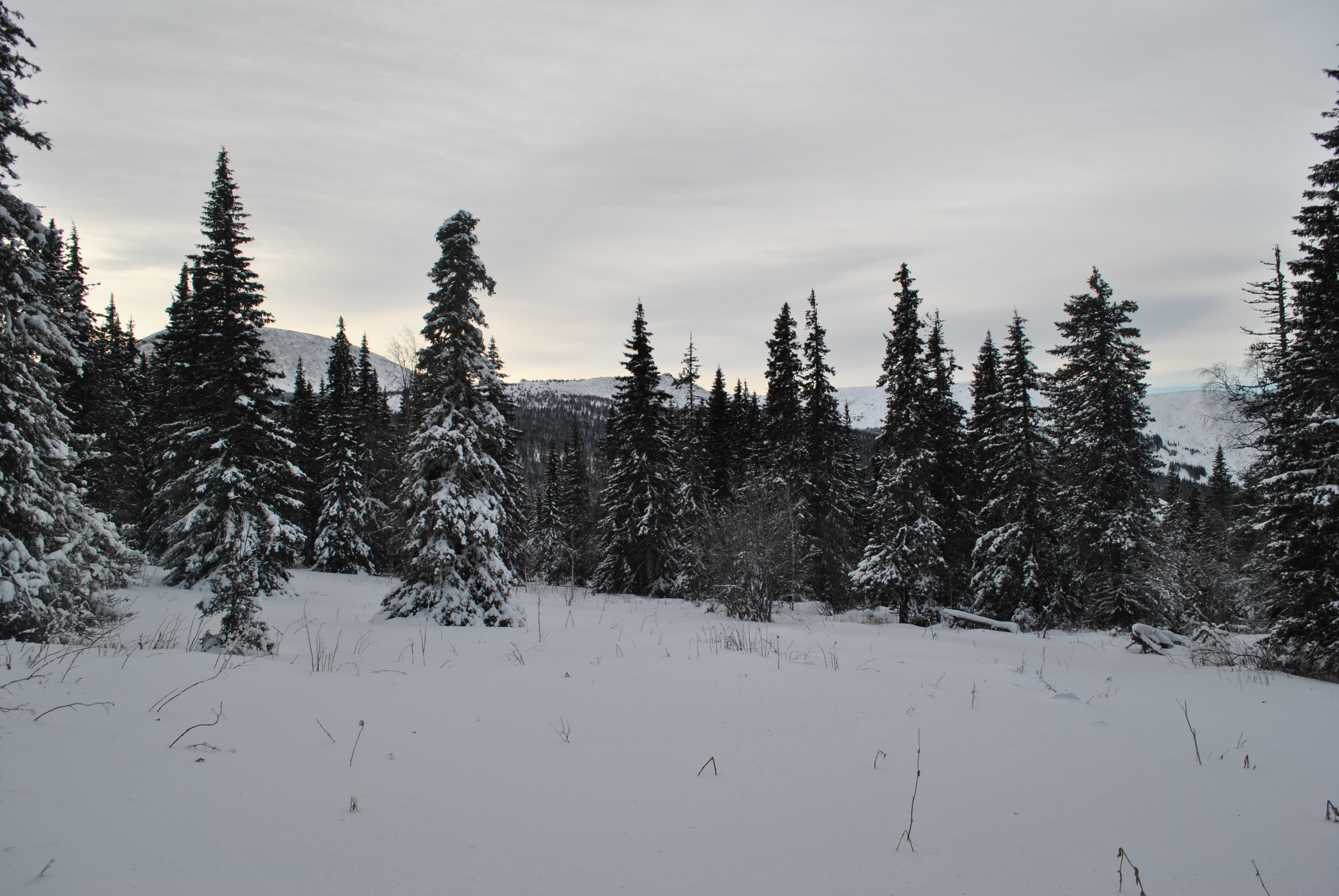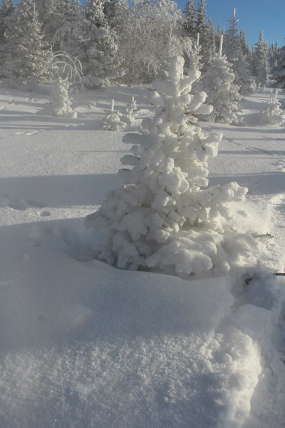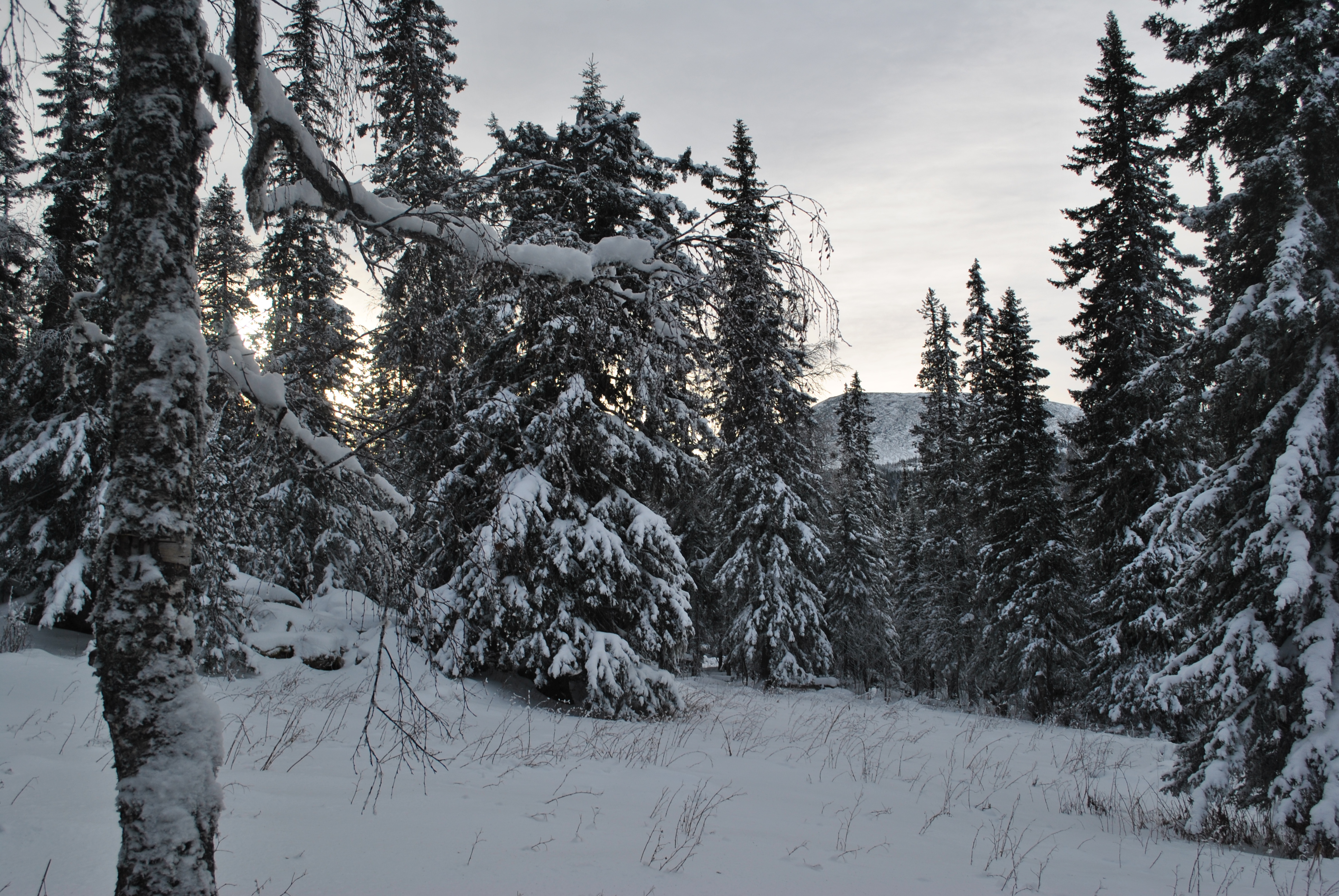 Вот так выглядит карликовый лес в окрестностя Иремеля. Подойдём туда ещё ночью, до рассвета. Хотя даже не ночью, а утром. Рассвет будет в Январе только часов в 9 или позже даже.
