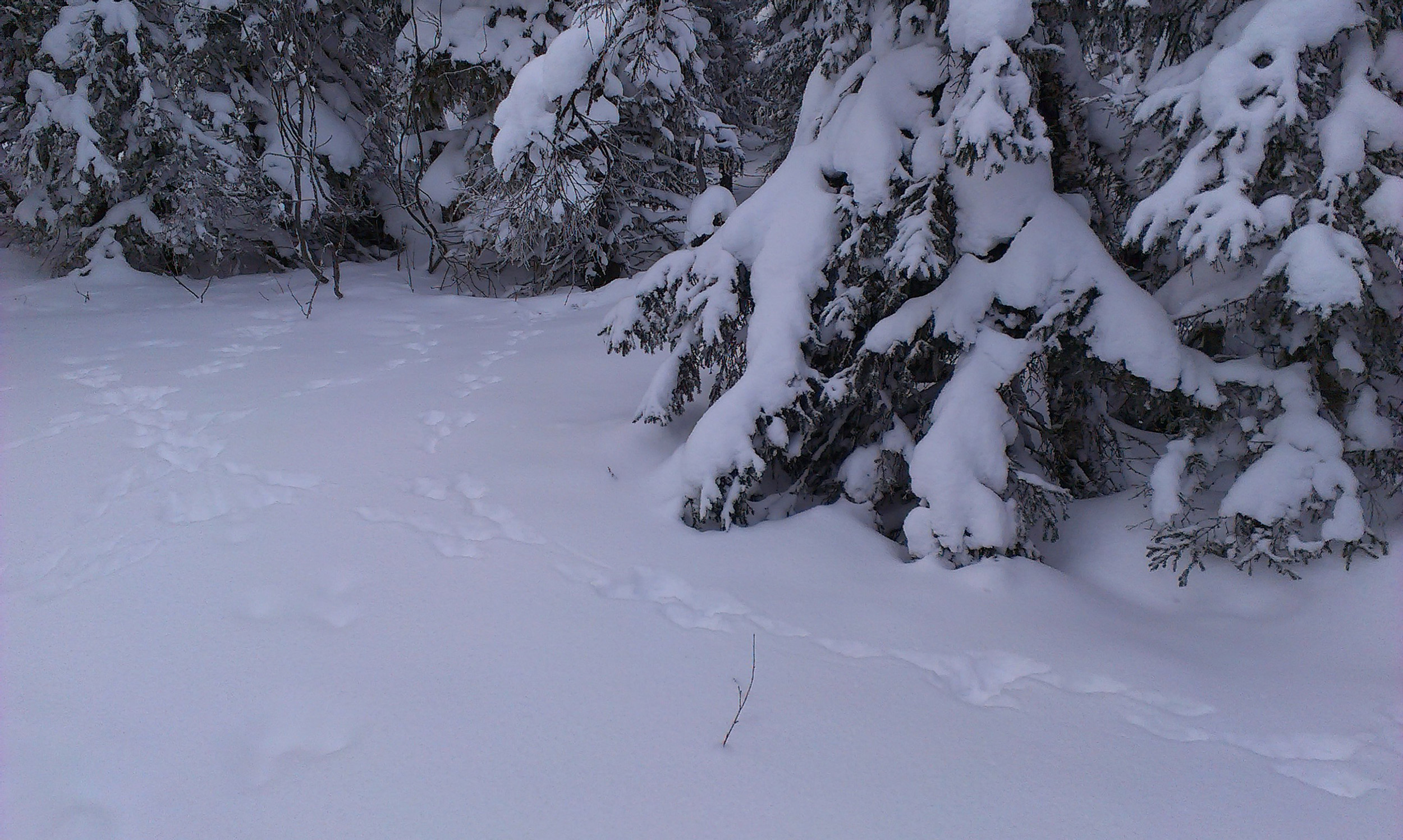 А ещё там очень много заячьих следов, как мы видим на фотографиях.