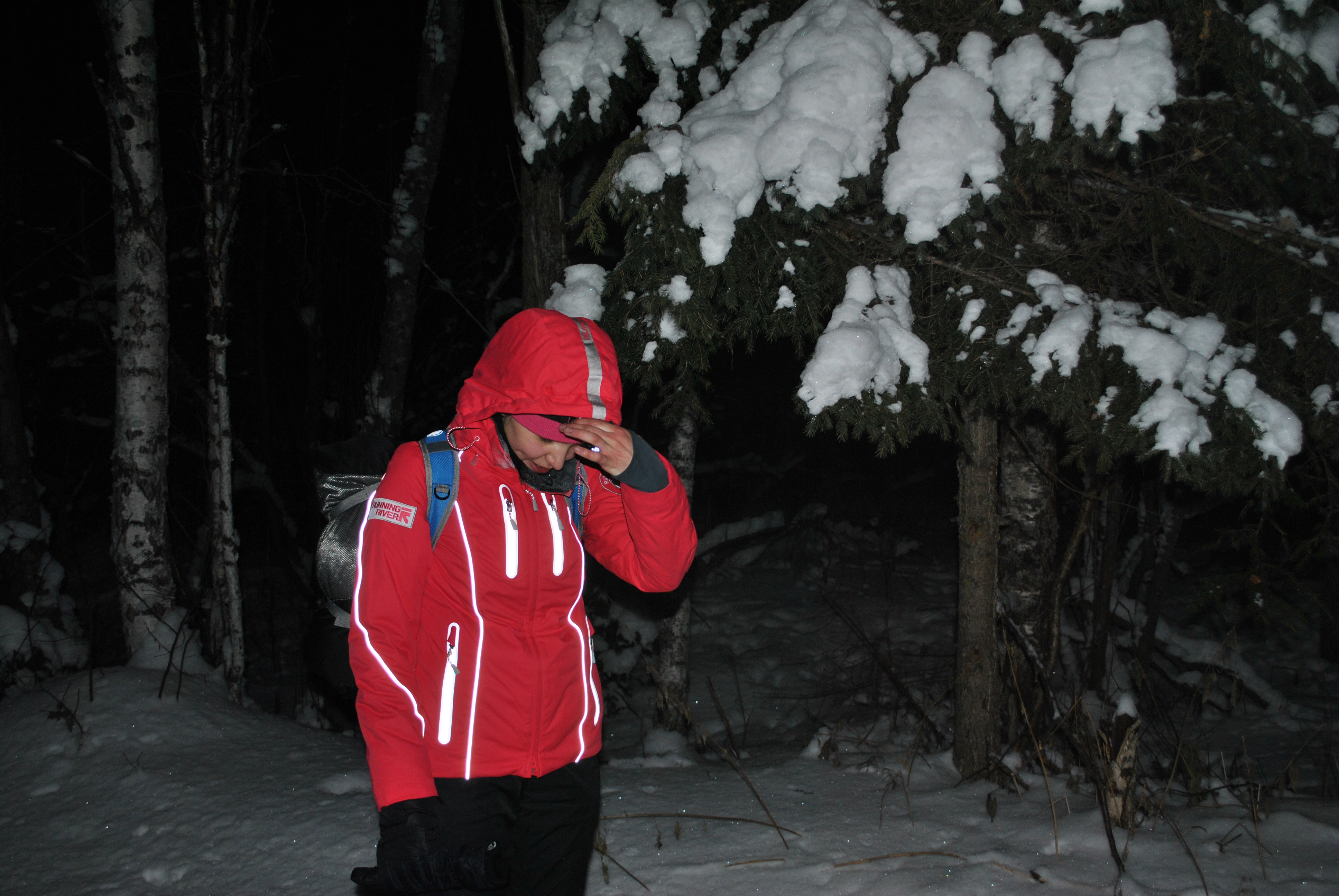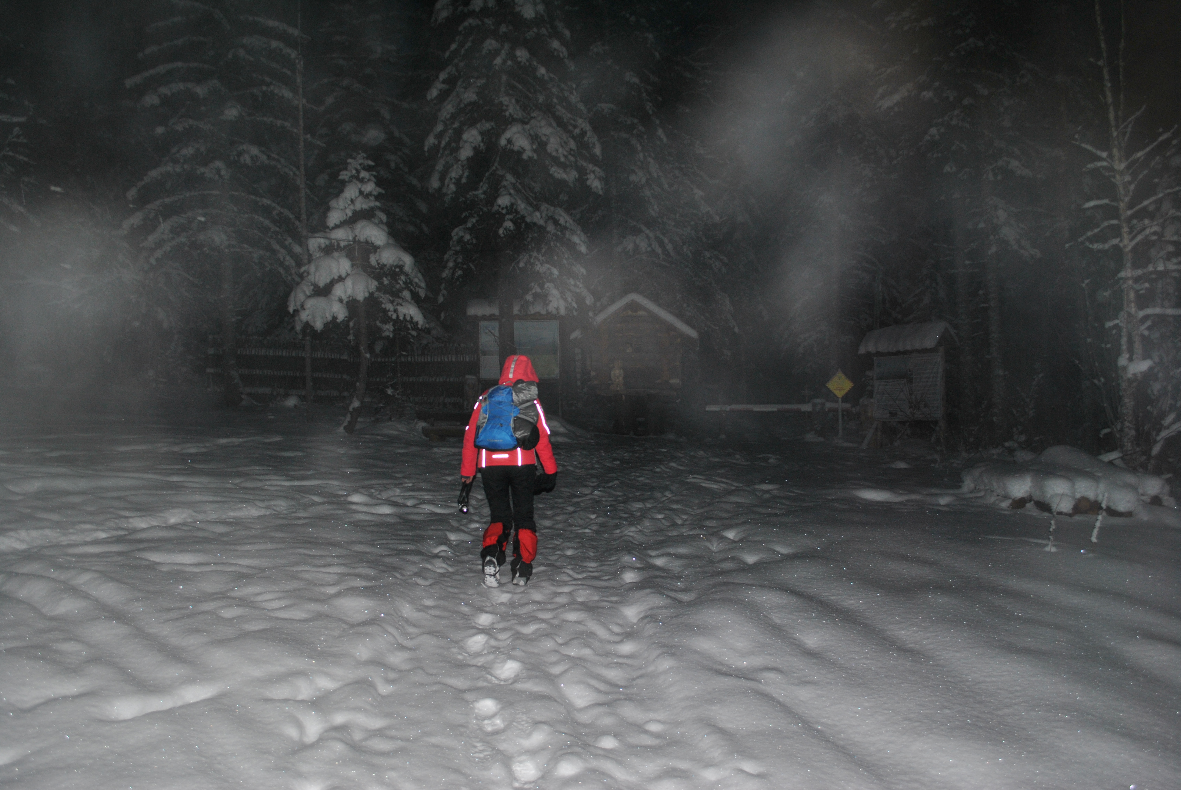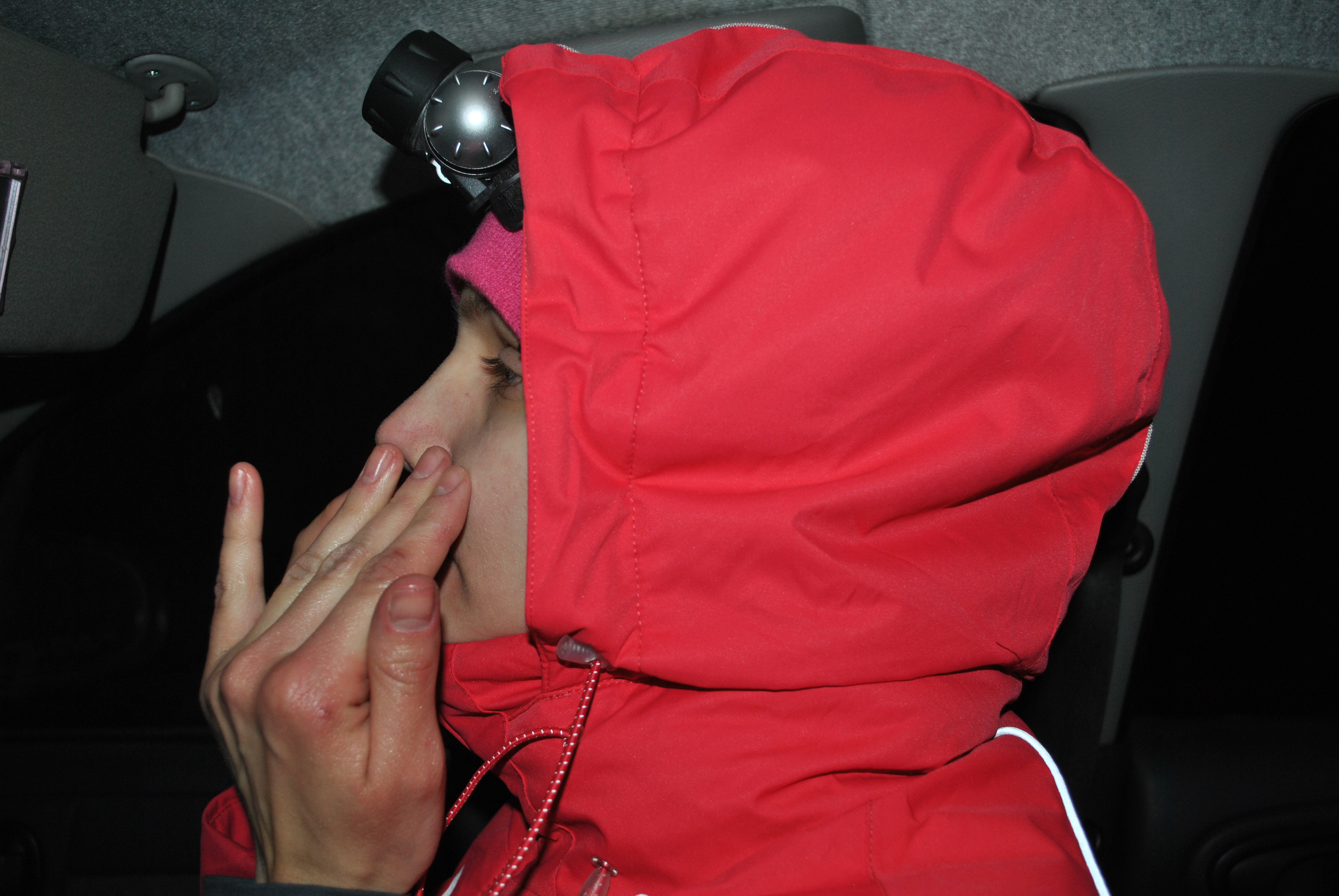 В общем более менее очухались в 06:00. Перебороли желание ещё поспать, перекусили. Надели фонарики на лоб, жена что-то там себе намазала, нацепили рюкзаки. И десантировались во тьму руской глубинки. Холодно, бля.