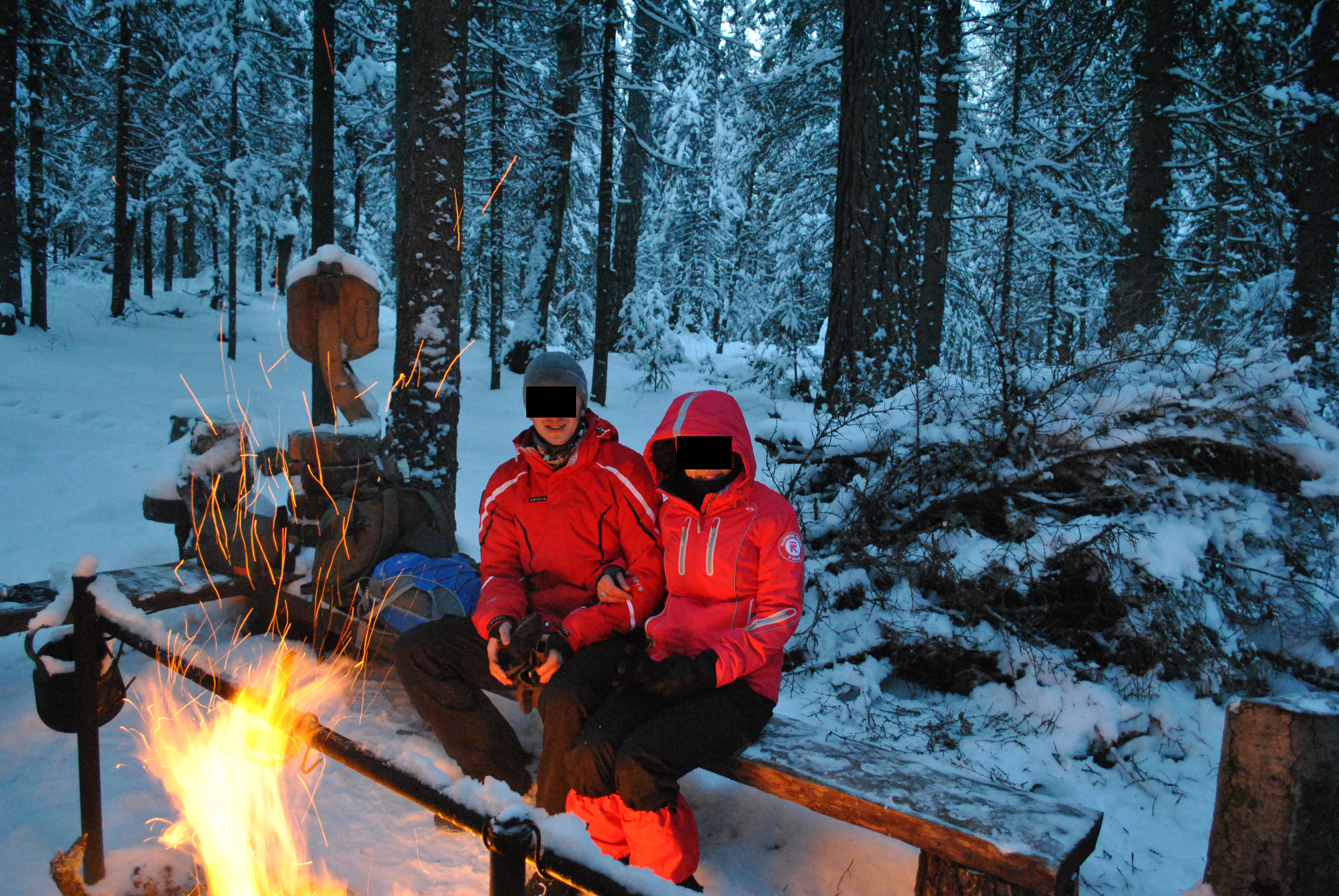Ох как же я люблю костёр. Охранник не унимался, суетился вокруг нас. Вот на пике, например, ломает лапник сухой, чтобы подбросить в костёр. Кстати он же и был в январе. Попросили его щелкнуть нас вдвоем.