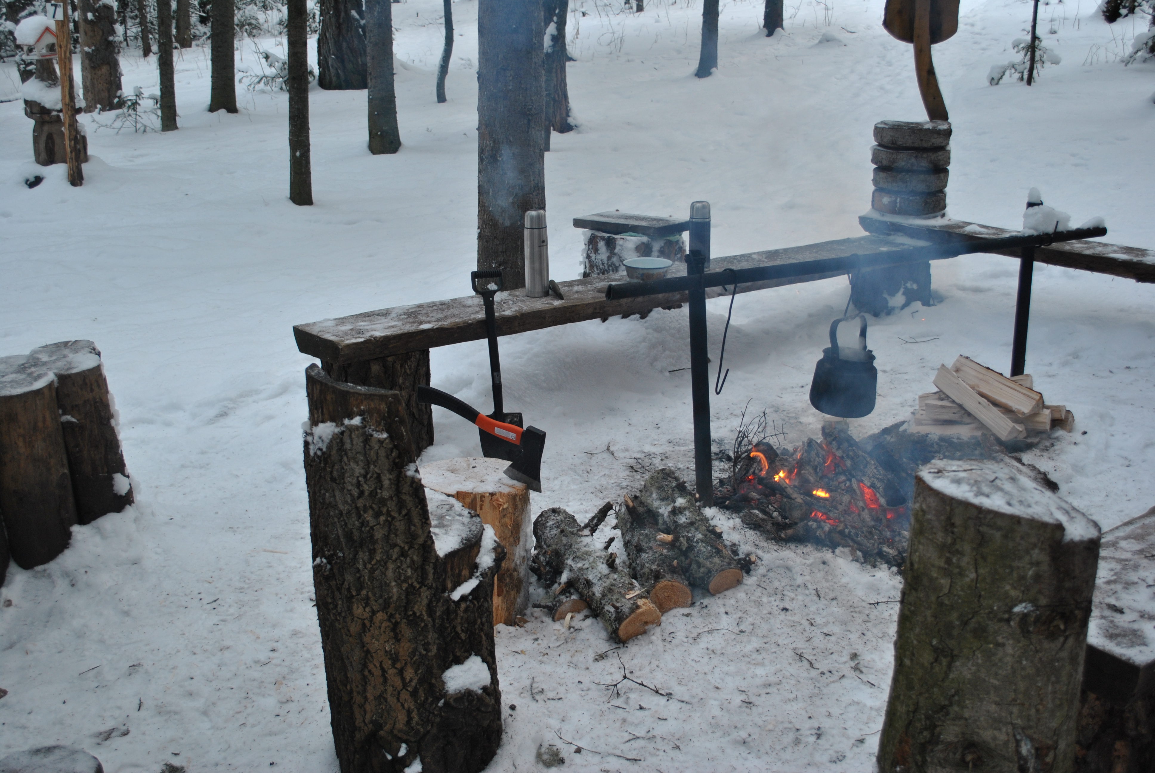 Можно обойтись без палатки, просто натянув тент, создать тепловой экран, и около костра провести пару часов, не спать, просто дождаться рассвета, попивая чай, рассказывая охуительные истории. Шалаш из полиэтилена уж не будем делать.