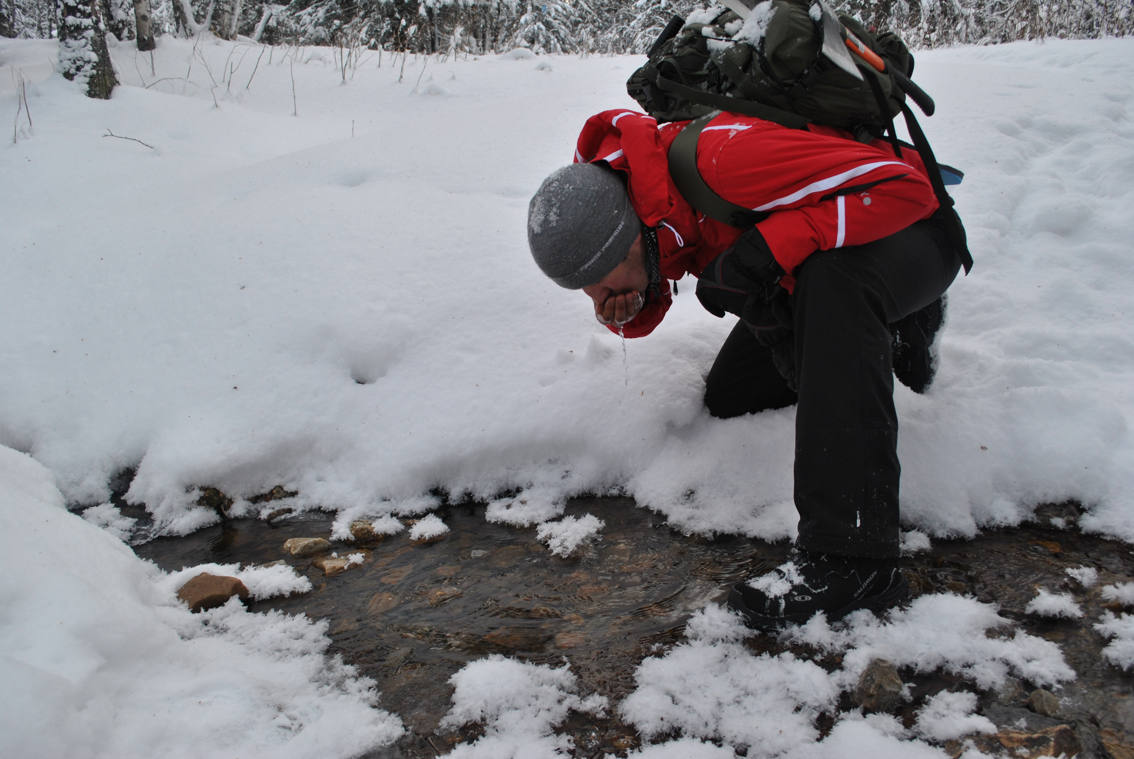 Поход получился в 3 раза сложней январского, т.к. пять дней там не было ни одного человека (как сказал охранник на кордоне), и всё время шёл снег. Тропы замело полностью, шли по целине, и по удлиненному маршруту (вдоль Малого).