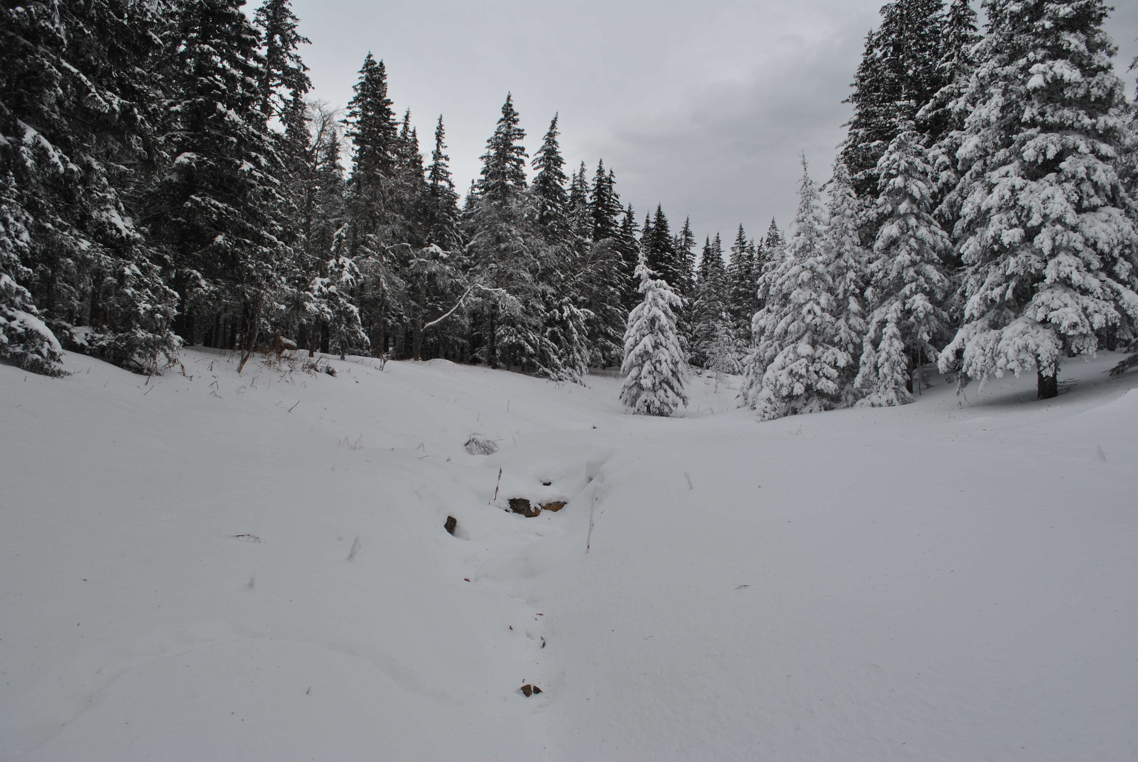Вот и прикиньте, как там по целине идти. Мне из дома казалось что быстро, мол туда/обратно. А на самом деле ещё бы полдня потратили. Ну вот, сам виноват. Пошёл вдоль малого, свернул на большой (вместо того, чтобы сразу на большой идти). Летом, наверное, это была бы просто лёгкая прогулка. Но зимой - тяжеловато.