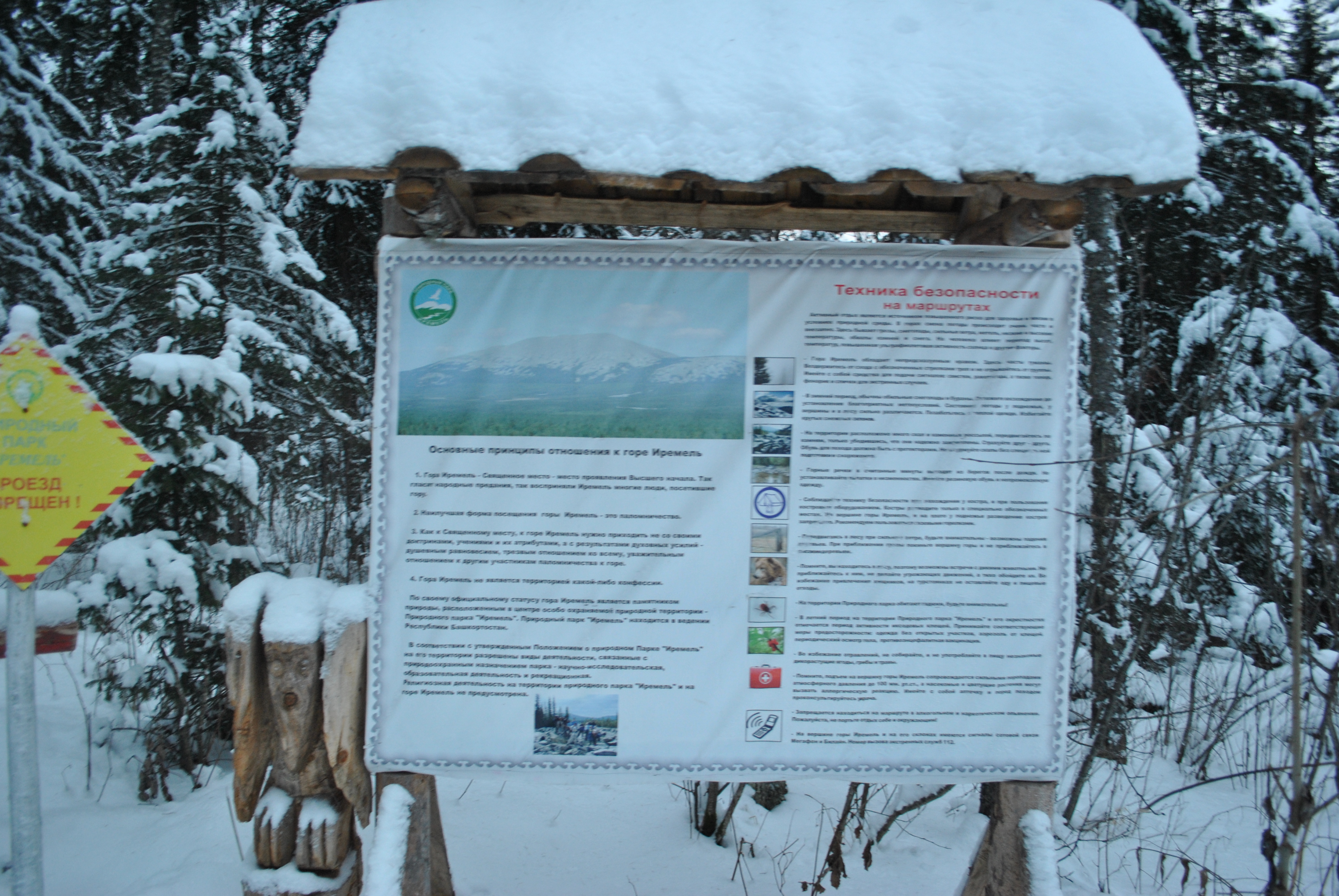 Охранник честно предупредил: "Тропы замело, снегоходов нет, т.к. межсезонье, ориентируйтесь по меткам на деревьях". И рассказал, что есть 2 тропы, вдоль Малого Иремеля - подлинней и сразу на Большой Иремель, покороче (разница в 1 км, кажется).