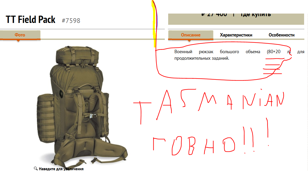 Да у тебя тактический БАУЛ. Ты припёр сюда свой говнотайгер, дорогой как крыло от самолёта, тяжёлый, как чугунный мост и при этом хуёвый, как дешёвое китайское поделие и видя что это хуйня начинаешь оправдываться. Я тебе чётко указал, что даже по габаритам параллелепипеда получается 66л, а ты всё равно в 100 веришь.