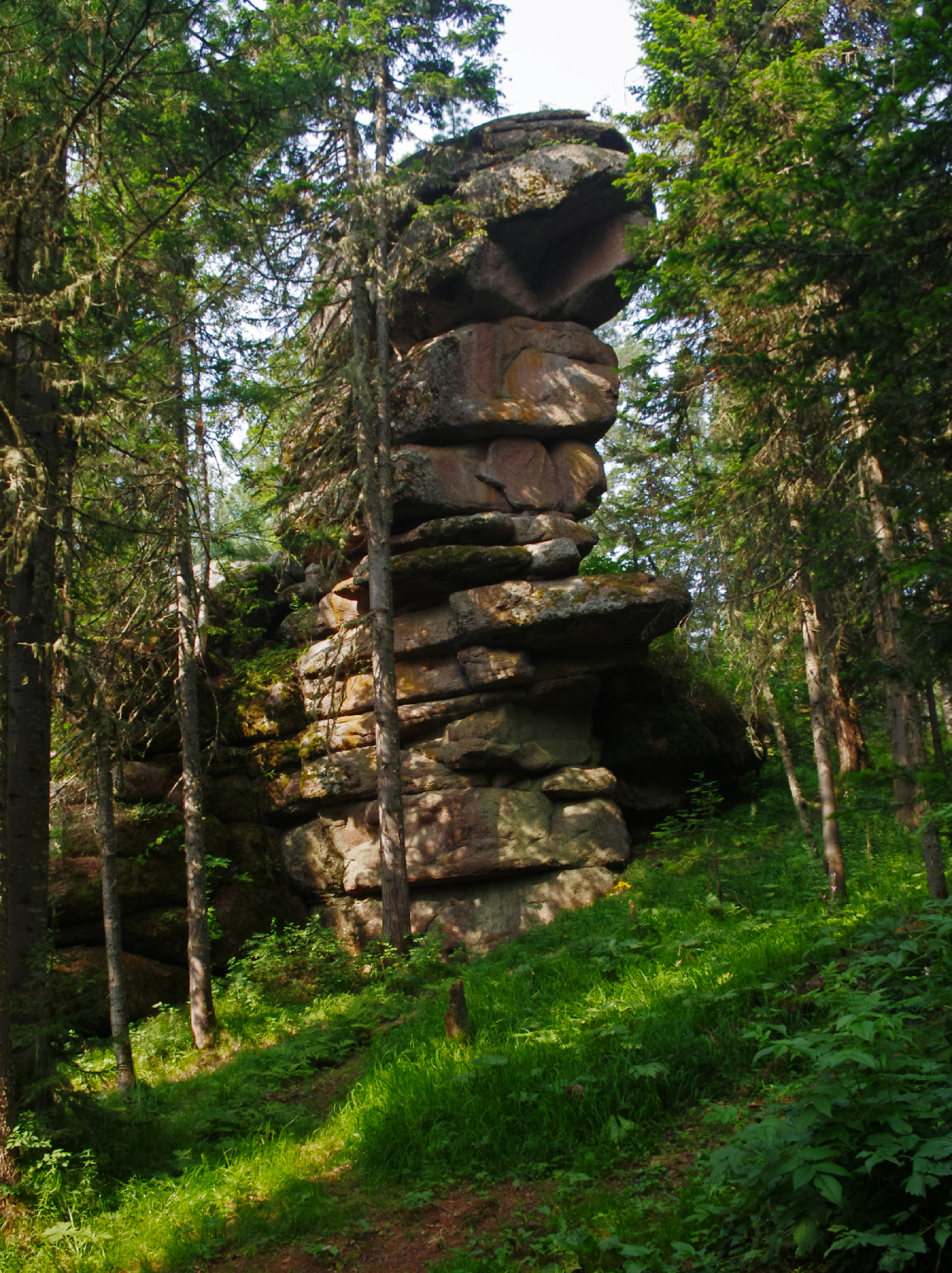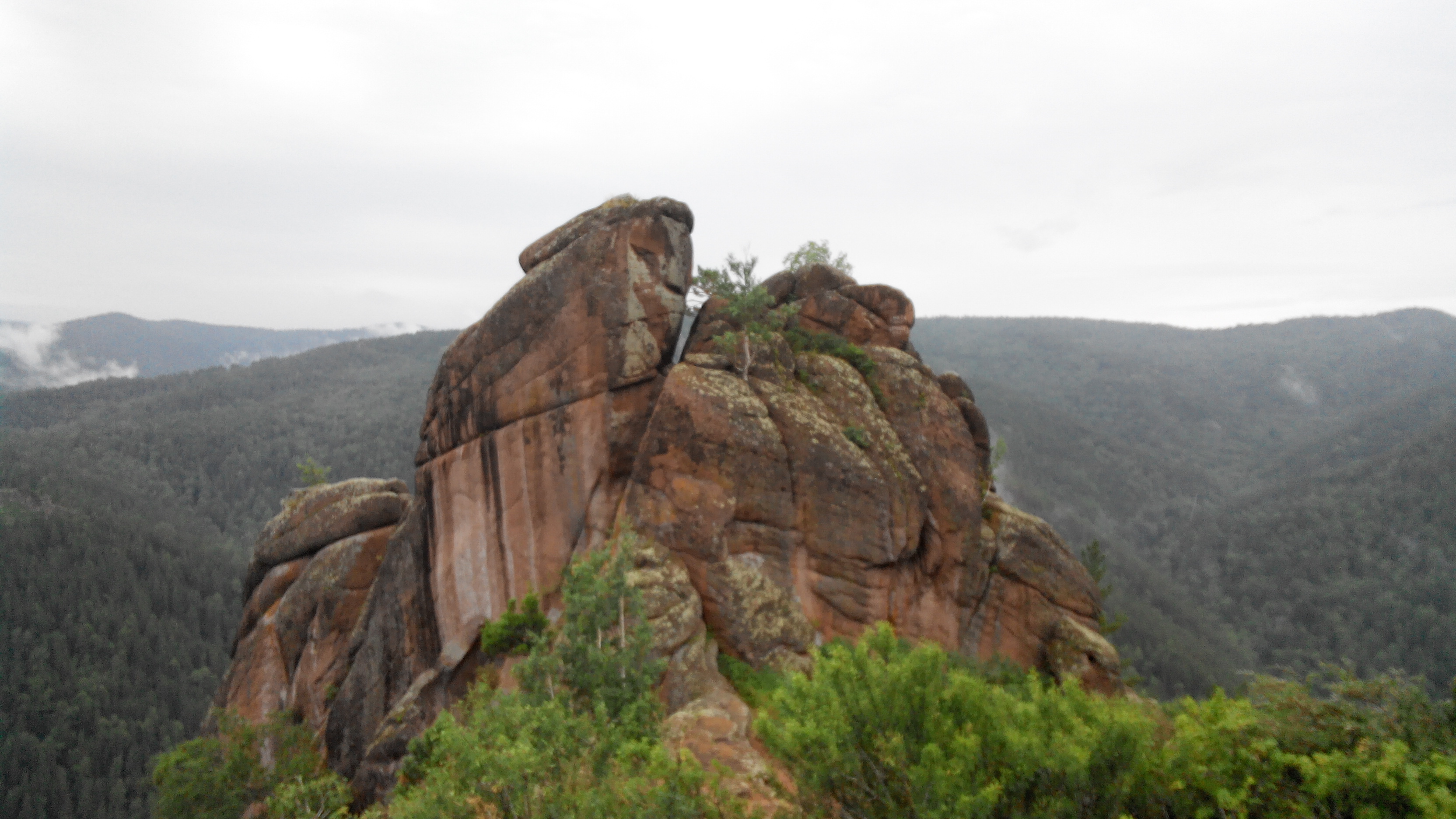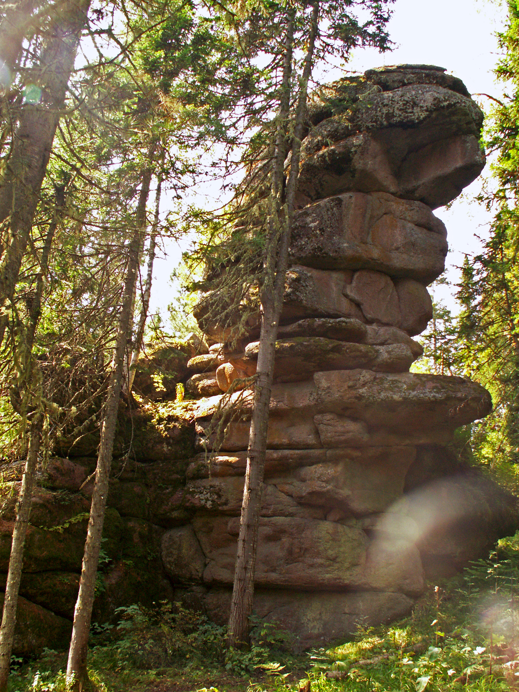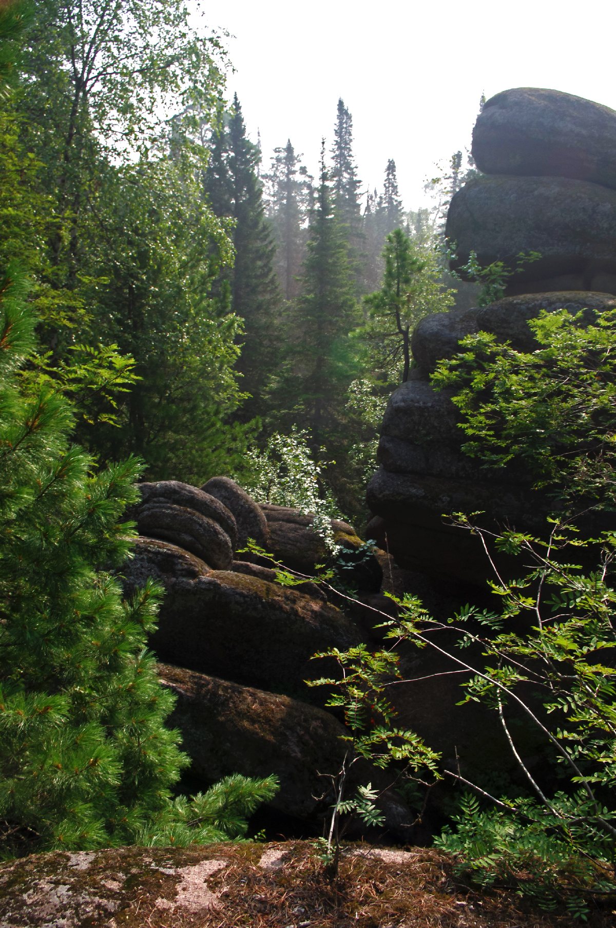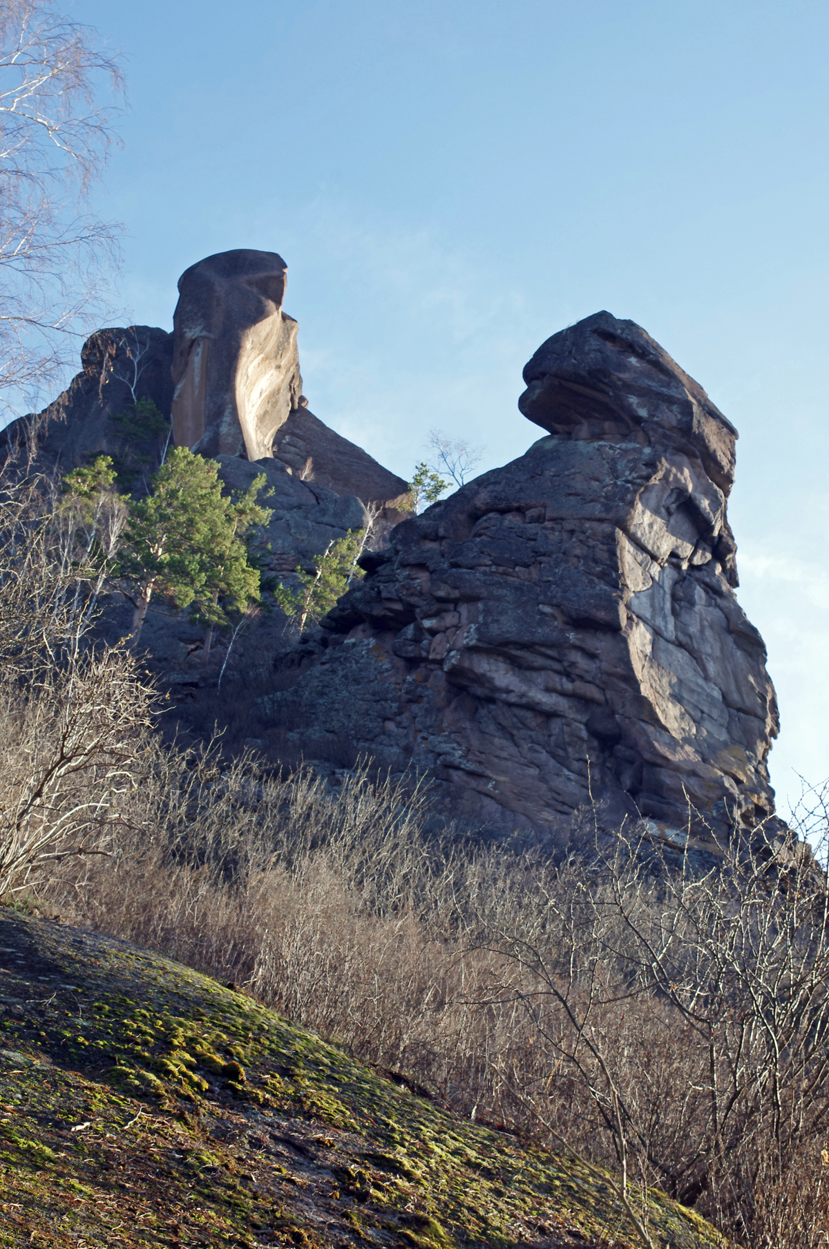 Конечная точка - скала "Парус" (хотя больше похожа на голову бритого самурая). Хотел полазить там еще, т.к. есть очень много интересных локаций, но телефонный навигатор почему-то жутко пиздел и не позиционировал нормально на карте. Посмотрел викимапию - в двух шагах буквально назад завернул от "Колдунов", блядь.