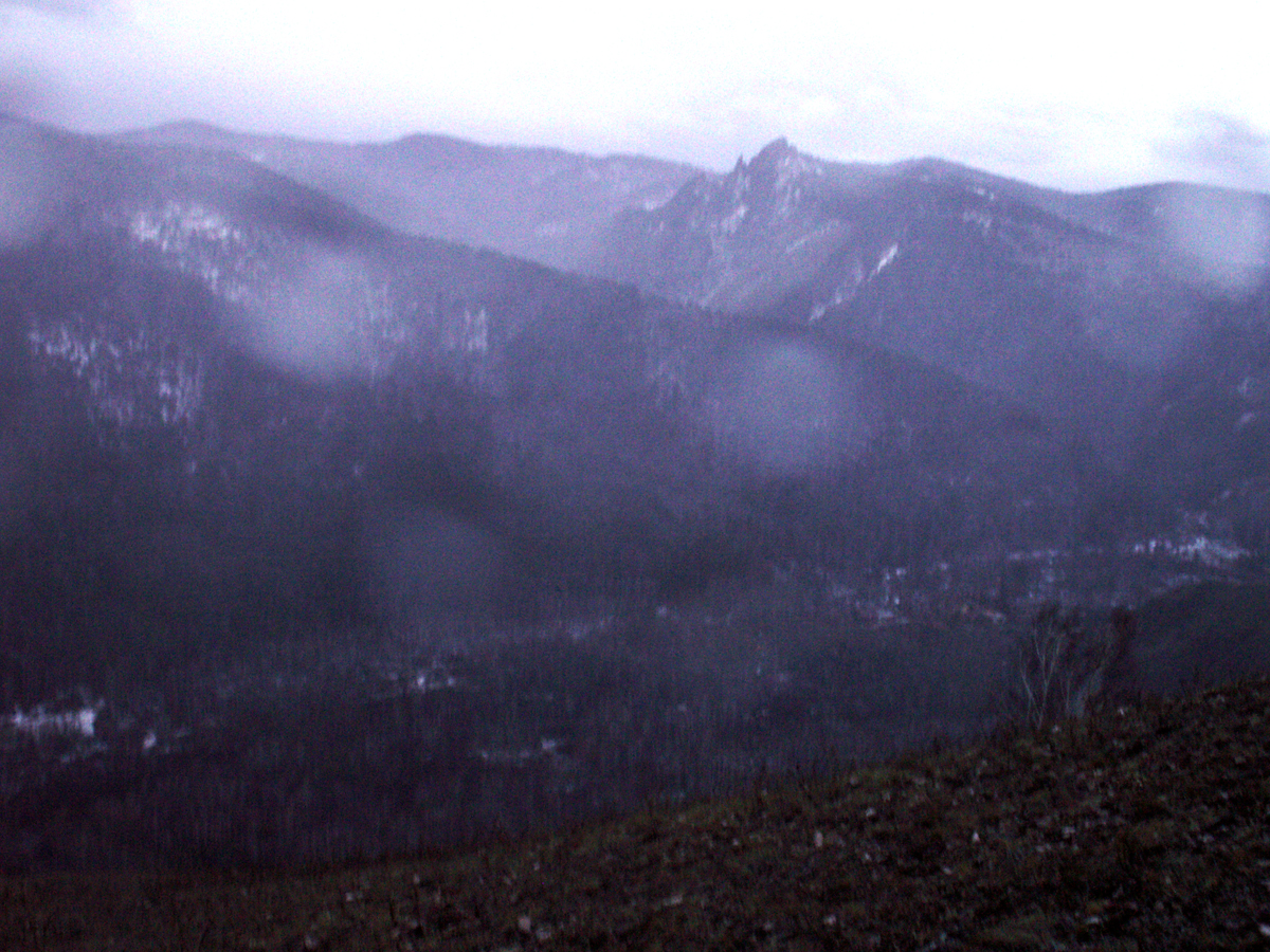 Встал вчера в пять часов, поехал на хребет. Думал сфотаю восход солнца. Хуй-то там, на гриве продержался минут двадцать под ебеническими порывами ветра и горизонтального дождя со снегом, когда объектив фотика забивало только открой крышку, а сам фотик просто сдувало с камня, промок моментально. Кроме того все тропинки заледенели, а подо льдом течет вода. Поднялся еще норм, а на спуске уебался несколько раз с переворотами и кульбитами, и промочил боты. Приехал в город - все заебись, светит солнышко, тучки еле ходят, никаких осадков. Обидно, сука.