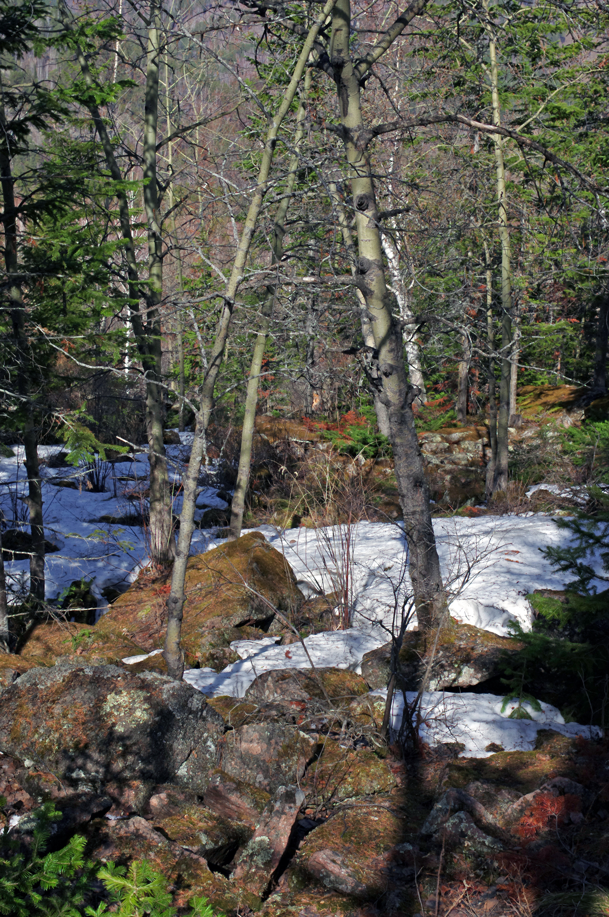 >>26902 В лесу местами еще снег, особенно стрёмно ходить там где он не вытаял в курумнике. Можно провалиться и сломать себе ногу. Медведей не было, но повылазили бурундуки, клещей не наловил.