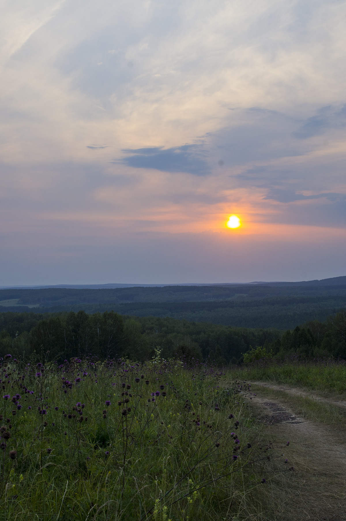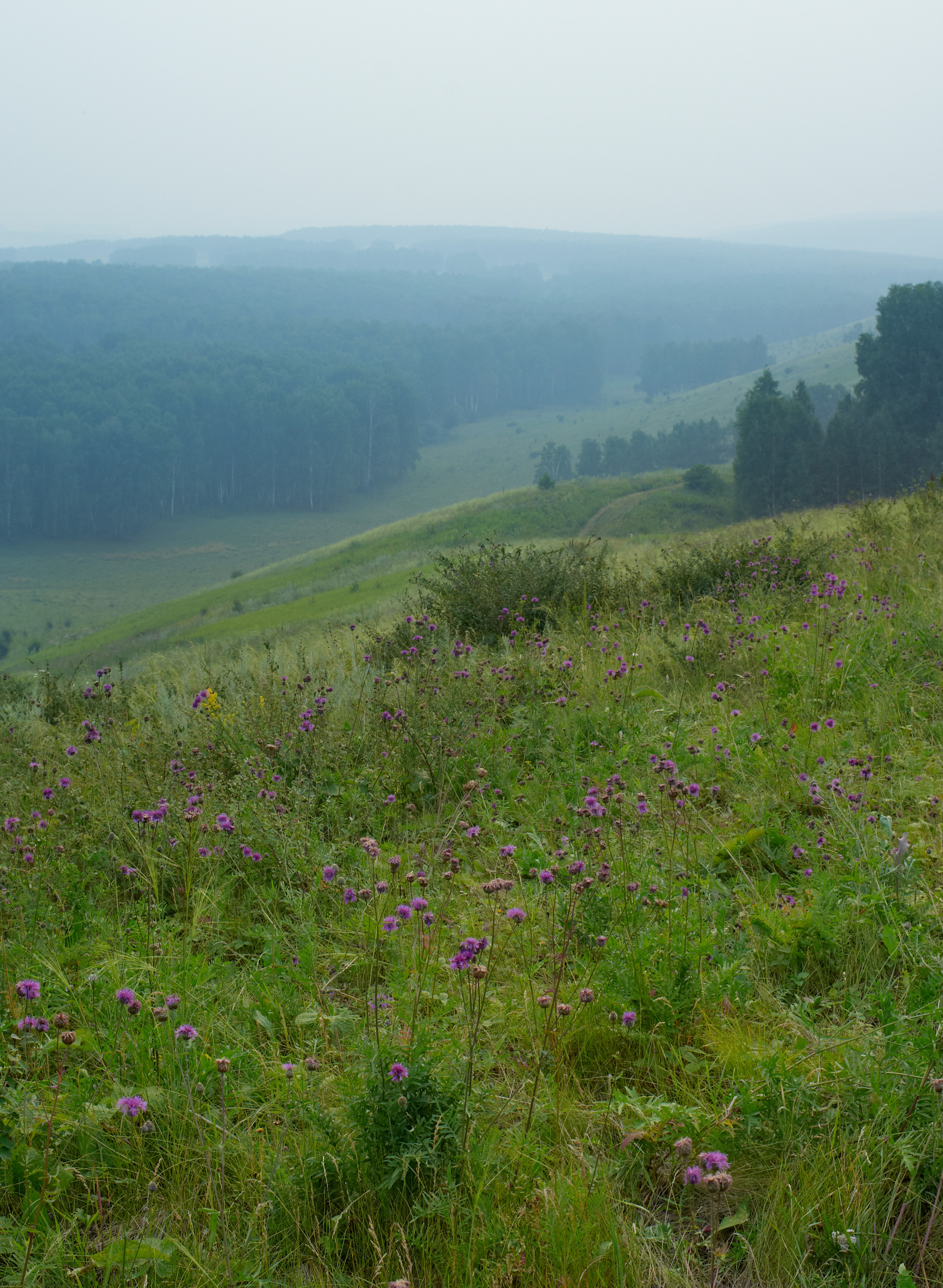 Нашел еще одно живописное место для пешадралки. Заебись, если бы не черное небо. Холмы, березовые рощи, мелкий сосняк, дохуя шиповника и луговой клубники.