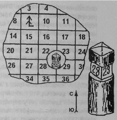 >>32345 Кроме этого >>32346: >На квартальном столбе написаны 4 цифры со всех четырех сторон. Направление на север будет ребро (грань) между двумя НАИМЕНЬШИМИ цифрами, соответственно ребро (грань) между НАИБОЛЬШИМИ - будет юг. Нумерация кварталов по возрастающей идет с севера на юг с запада на восток. Соответственно все квартальные «вертикальные» просеки идут север-юг, а «горизонтальные» запад-восток.