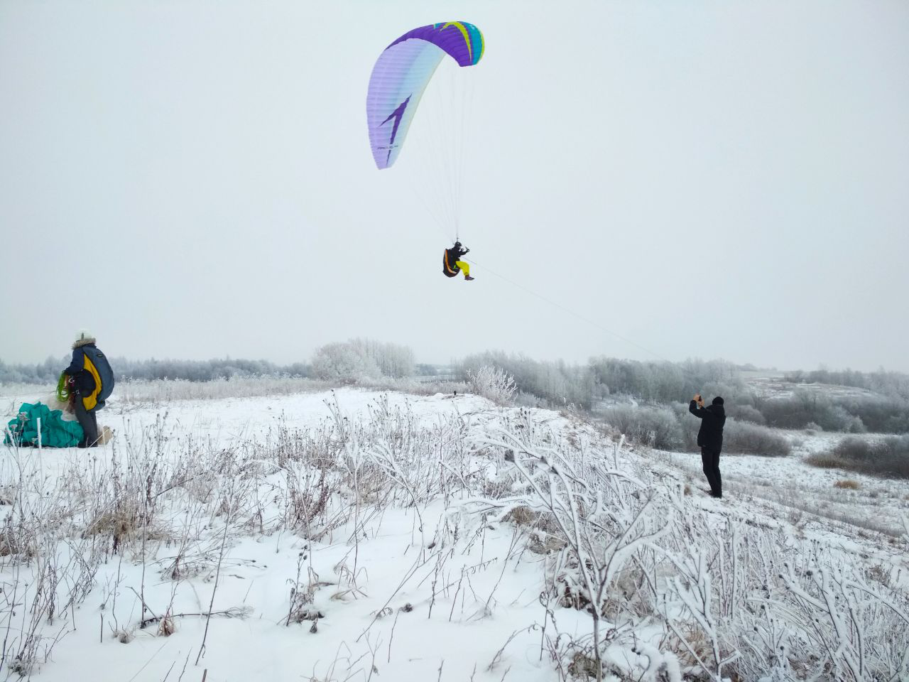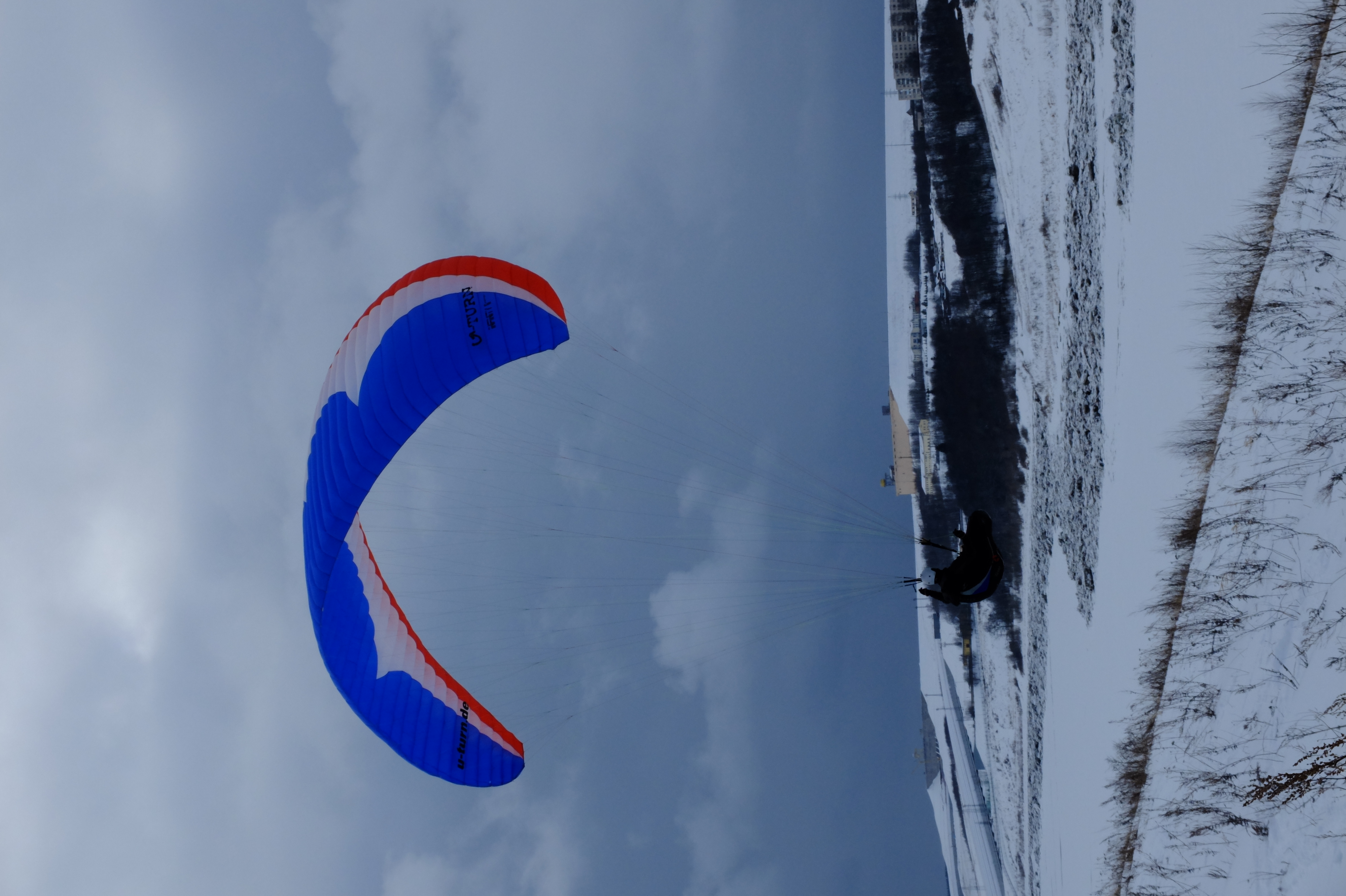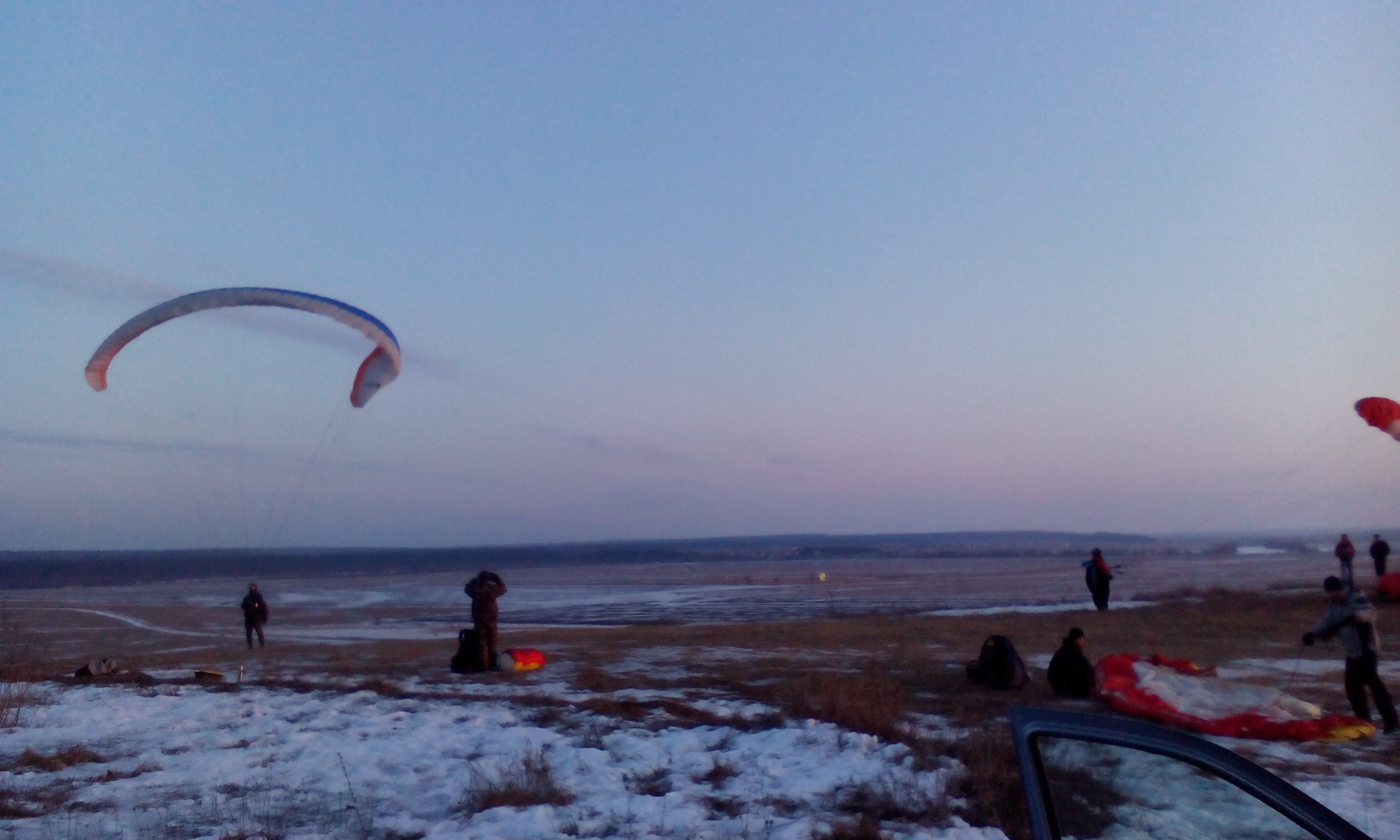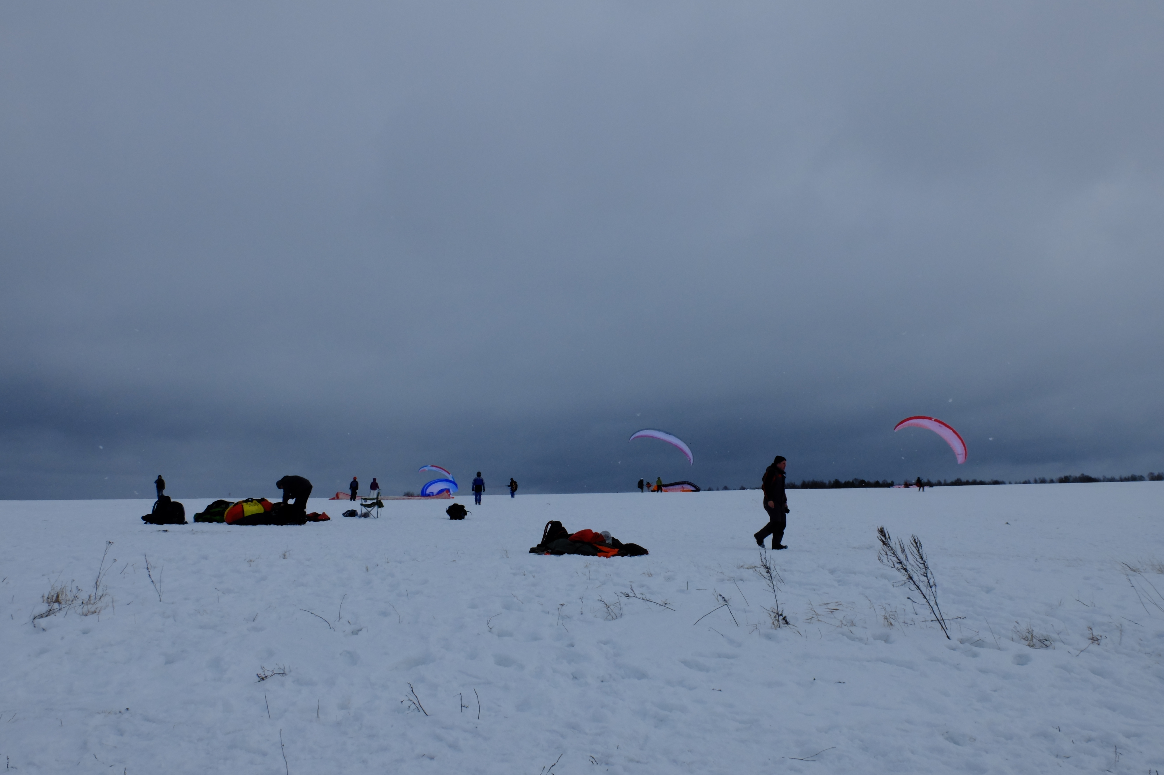 Здравствуй, мой личный бложик. Продолжаю свое обучение. Ебучий ветер в ДС2 все никак не хочет развернуться в нужную сторону и дать полетать с горки. Поэтому снова ездил в поле наземить. Народ вернулся с выходных, ездили большой толпой. По колено в снегу бегать все так же тяжко. Но в итоге ветерок поднялся и я даже смог пройти маршрут-змейку, в отличие от других учеников. Впрочем это скорее заслуга моего крыла - у меня-то оно новое, мое собственное, а им выдали убитые клубные старые, которые хрен поднимешь.