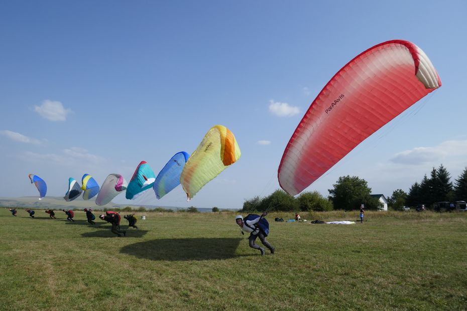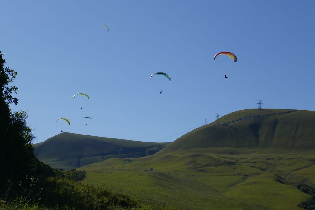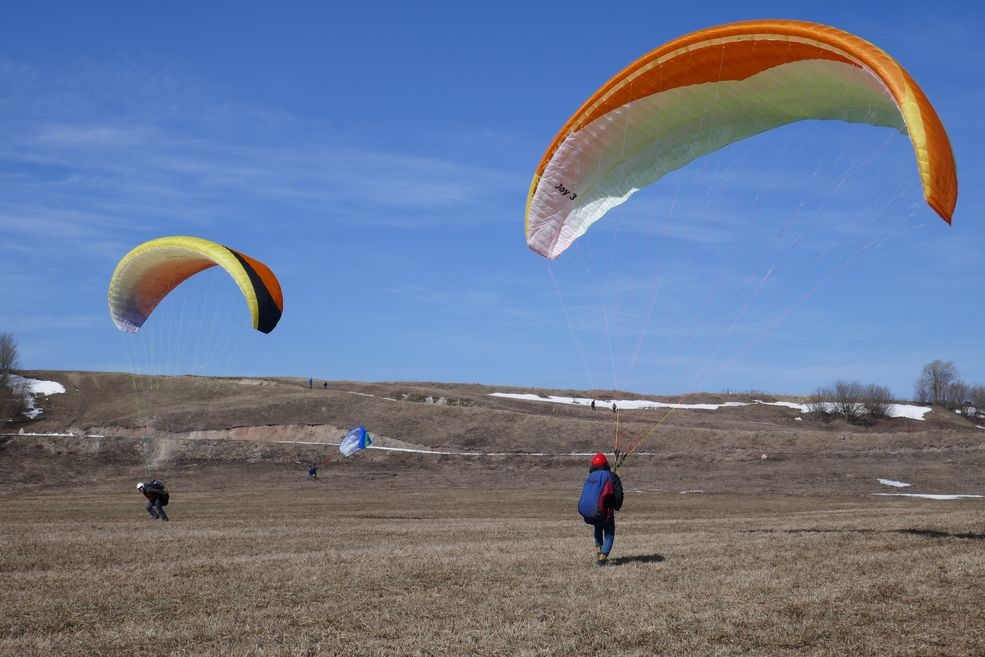 Вообще там был выезд школьного клуба парапланеризма, школьники толпами бегала туда-сюда со всякими разными куполами. Я как-то вообще с трудом представляю, как родители отдают своих детей в подобные секции, мне бы страшно было своего личинуса отдавать. Зато им это бесплатно, и обучение и прокат крыльев на время обучения. Правда крылья там некоторые древние, помню слышал как школьники смеялись что некоторые парапланы старше их самих.