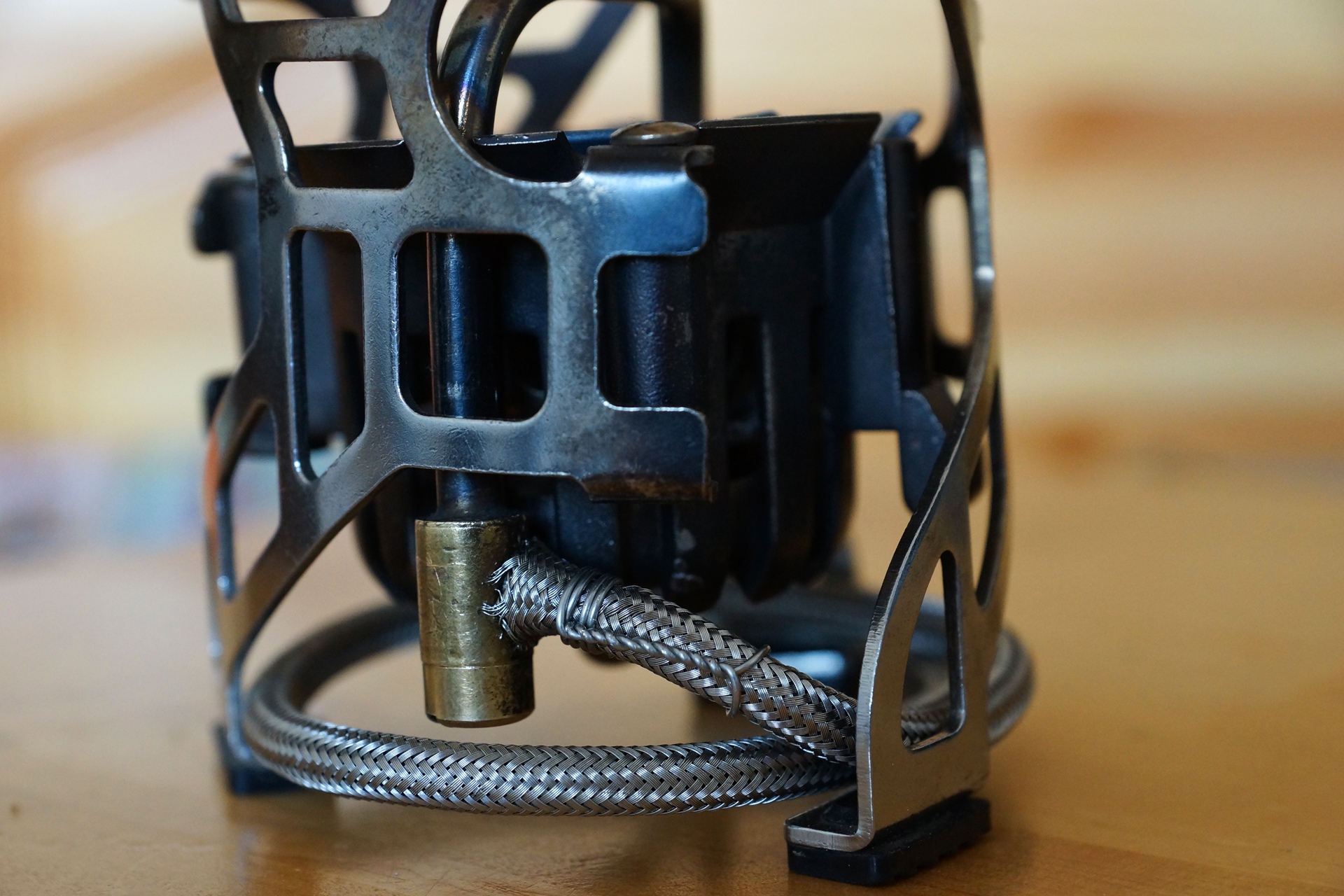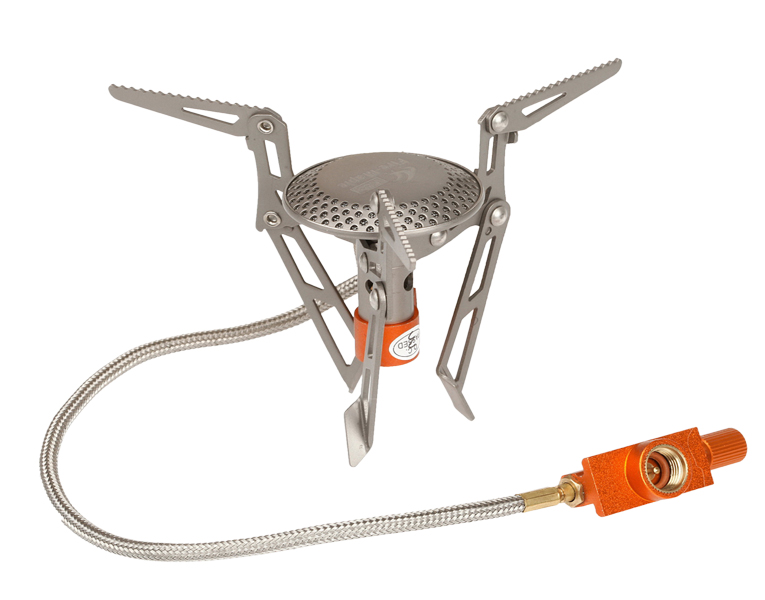 Ноунейм-говно, купленное в Ленте за 1300р. 20см шланг, накручивающийся балон. Четвёртый год юзаю и доволен. Прошёл со мной горы, равнины, леса. Иногда даже в сычевальне у пекарни прямо разогреваю себе чай, просто потому что могу.