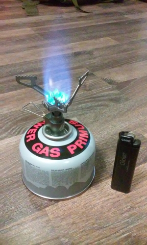 Маленький, шумный, склонен к перегреву на больших кастрюлях, ветроустойчивость чуть лучше газилок (не сдувается, но остывает и начинает плеваться). Жрет все, что горит (но лучше таки бензин; любой, не верь кукареканью о "калоше"), не засирается, горит на полной мощности с полчаса. В чехле есть место для заряда сухого спирта на розжиг, спичек и прочего говна. Короче, хорошая штука для резерва или похода выходного дня. Для нескольких человек и длительной готовки его уже явно недостаточно.