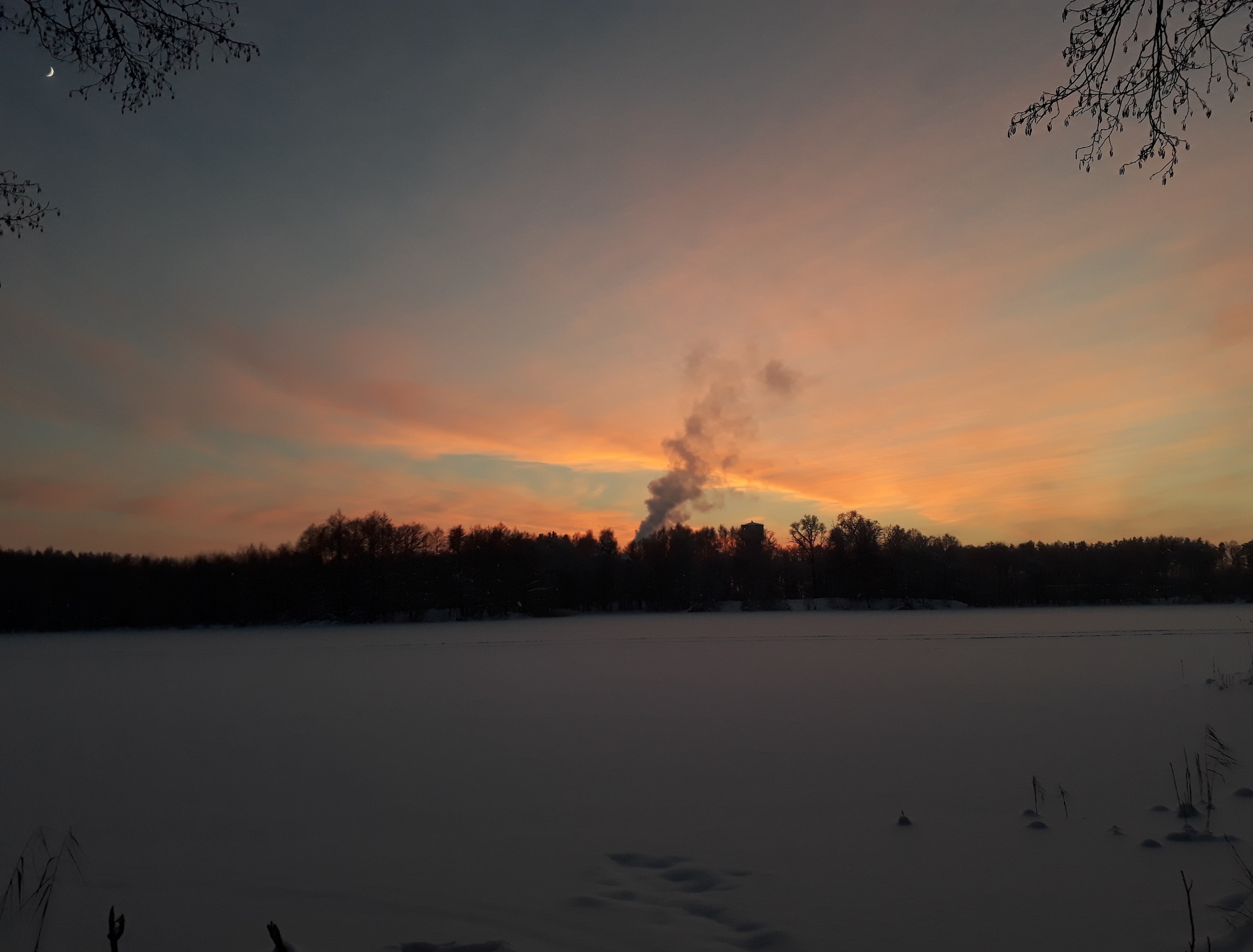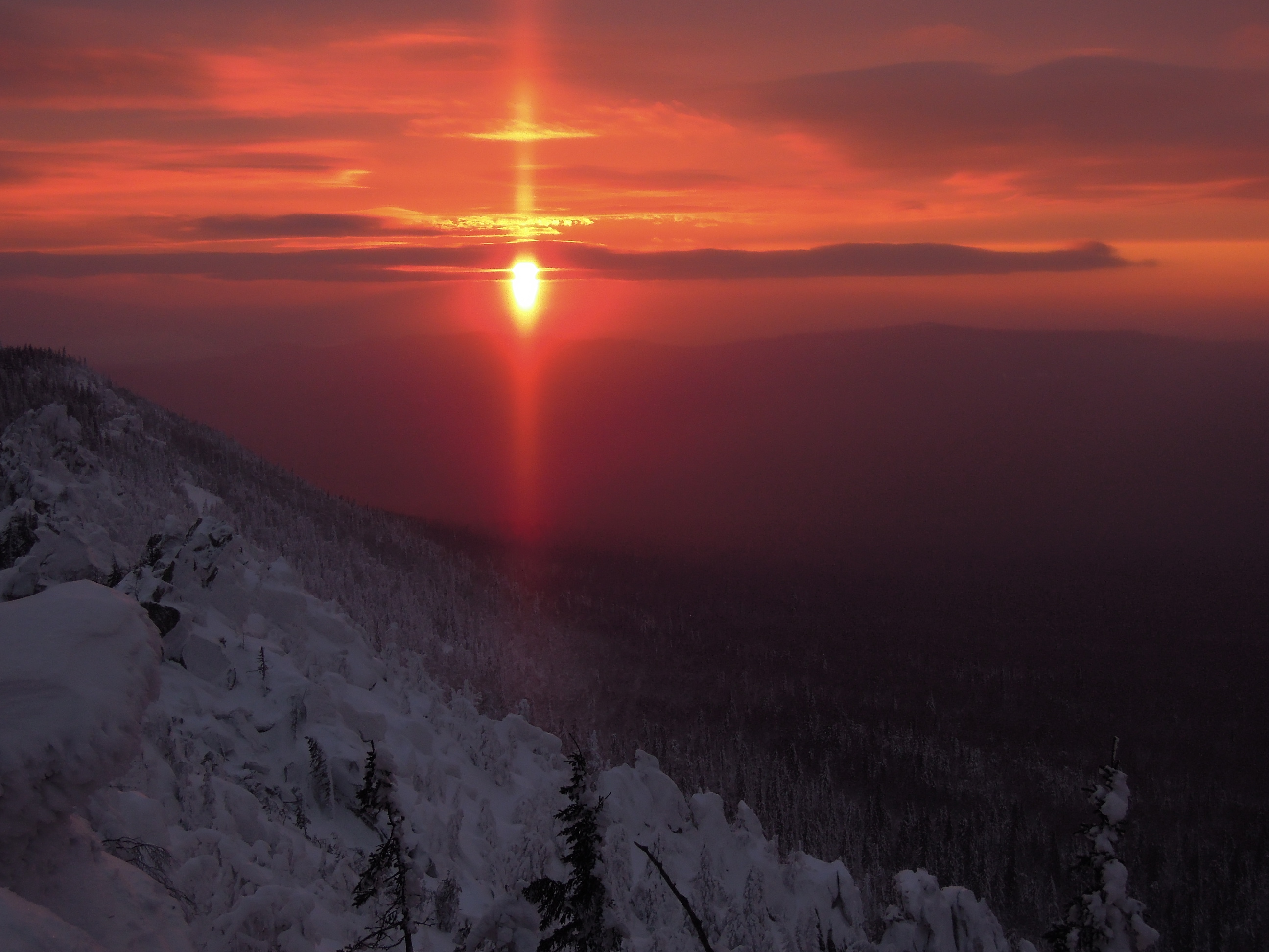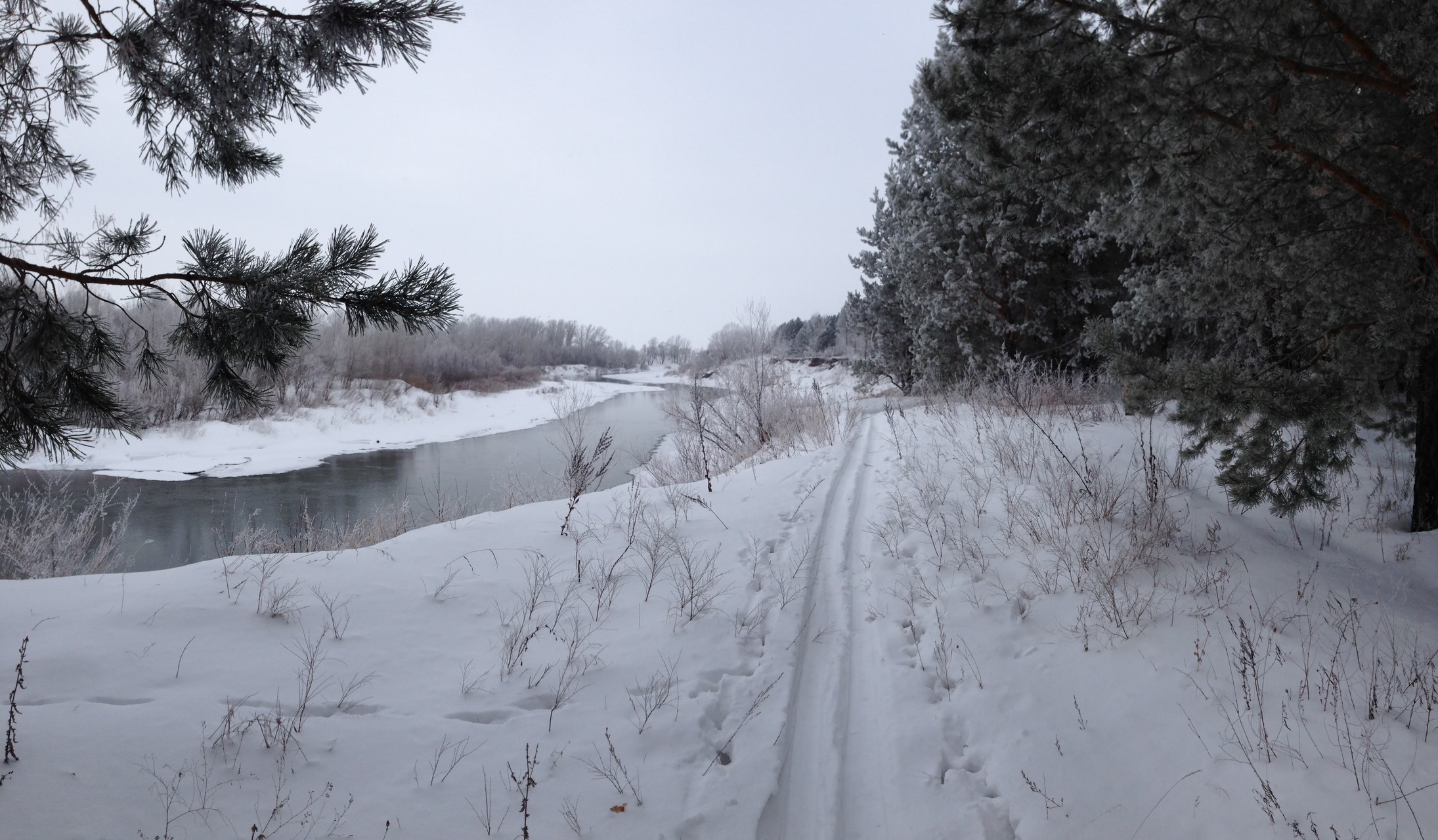 Фоток мало ибо лень и не чем снимать особо. На картинке Ю.Урал, хр. Уреньга, г. Вторая сопка. Дошел до границы леса от места фоток за 40 мин, тк. лыжня почти сразу кончилась, потом повалил снег и вершину затянуло. Развернулся и пошел назад.