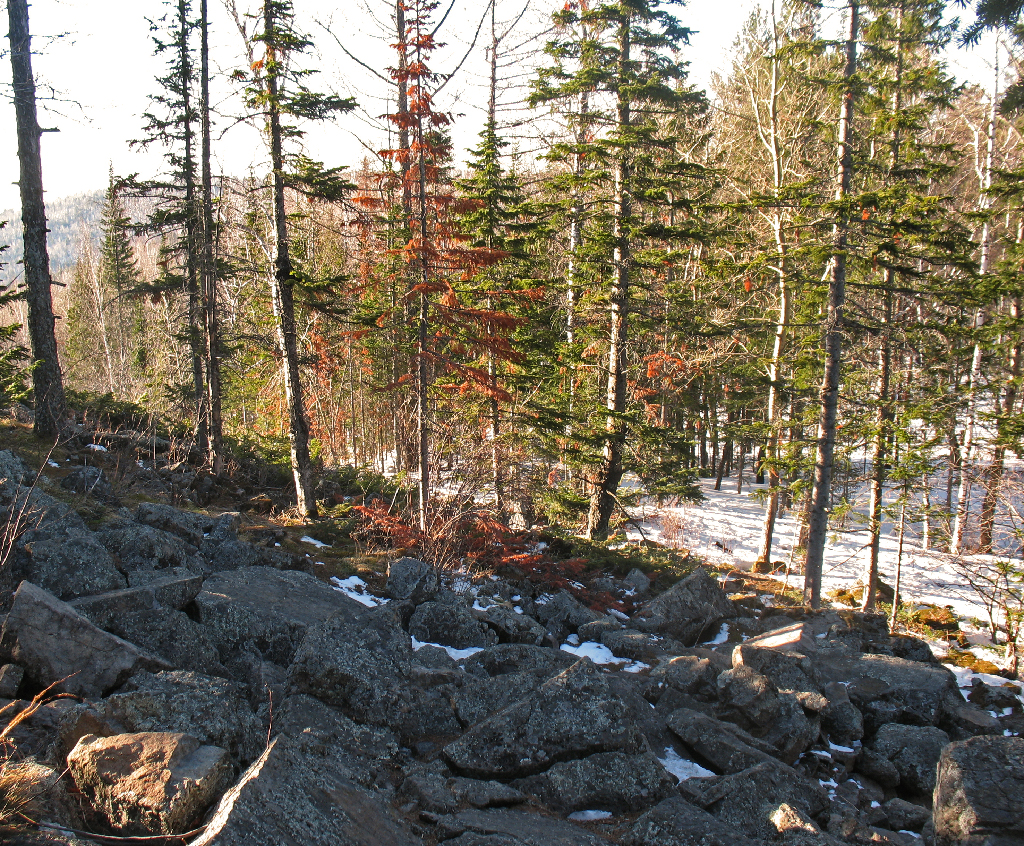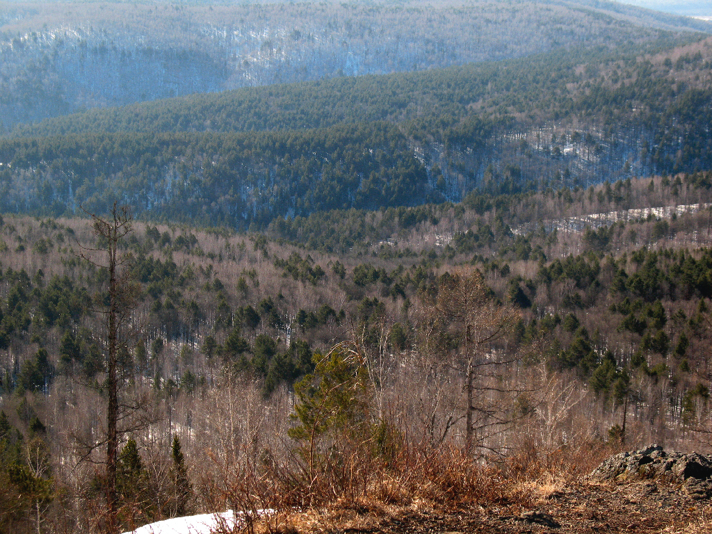 >>59056 2015 год, апрель месяц, множество мелких и средних предприятий благополучно обанкротились или более-менее бескровно затаились, масса специалистов оказалась в свободном полёте и судорожно ищет куда бы пристроиться, цена на рабочую силу от этого падает ещё сильнее, чем от прочих факторов, до тёплого сезона, когда начинаются шевелиться выжившие покупатели/заказчики дело ещё не дошло - в общем, махровая классика. В этот момент я как раз сидел без работы и послонявшись по городу понял, что ничего путного я здесь не найду. Долго ли, коротко ли, поиски привели меня в армянскую бригаду, что трудилась в Советской Гавани, куда я к концу месяца и был благополучно доставлен. Местечко прохладненькое - сугробы лежали до мая, а последние снега прошли в начале июня. Не скажу, что меня это сколь-нибудь удручало - природа-то мне нравилась, я даже остаться подумывал, ибо Мухосрань меня нисколько не смущает, но в итоге началась нездоровая задержка зарплаты, я вырвал сколько смог и свалил в закат. Мне-то было ещё легко: во-первых я мог спекулировать тем, что кроме меня в бригаде никто не имел права проводить сварочные работы на участке, и ещё до дома мне было 500+ км и все дела, а вот армяшкам пришлось туго. Но не будем о грустном. Так вот, принцип известный: поработал - отдохни! А отдыхать я особенно люблю на лоне природы. Заблаговременно начал подготовку к мероприятию - нашёл на работе (строили местную ТЭС, кстати) калёную железку, замастрячил себе ножик, вместо палатки купил в местном хоз.маге полиэтиленовую плёнку, топографический атлас был привизён с собой, равно как и компас. И вот, получил деньги, добрался до трассы и поехал автостопом до места, которое находил наиболее интересным. Как оказалось, дорога на атласе была актуальна в 80-х, но никак не сейчас, благо отсутствие ЖПСа не помешало найти нужное место (см. пик). Чем люблю наш край - до ближайшего населённого пункта оттуда 90 км, ни тебе шума, ни световых шапок, ничего - чистый воздух и красота. Хотя, конечно, не всё так целомудренно, как хотелось бы, но что поделать. Маршрут себе выдумал я страсть какой интересный, но пришлось в этом отношении себя обломать и ощутимо обрубить планируемую тропиночку. Сначала-то всё было хорошо - выгрузился, сориентировался, переночевал и пошёл. Хорошо пошёл - по пути оказалась минералогическая полоса. По пути шуганул медвежонка, прогулялся вперёд, пообщался с лесниками, ещё прошёлся и понял что маршрут, что я проложил очень удобен не только мне, но и косолапым, что вытоптали и изгадили просто всё вокруг. Как раз, в это время у них шёл гон. В общем, плюнул, развернулся, устроился в укромном местечке у реки и засычевал там на пару ночей. Посветлу бродил по округе и был весьма доволен - хорошо, спокойно, уютно. Если не брать в оборот клещей и гадюк, гнус-то ещё не успел наплодиться - рано. Был это, кажется, конец июня или начало июля. Неоднократно ещё туда возвращался, но нормально так и не походил - либо компания только для походов выходного дня, либо всё шло просто через жопу.