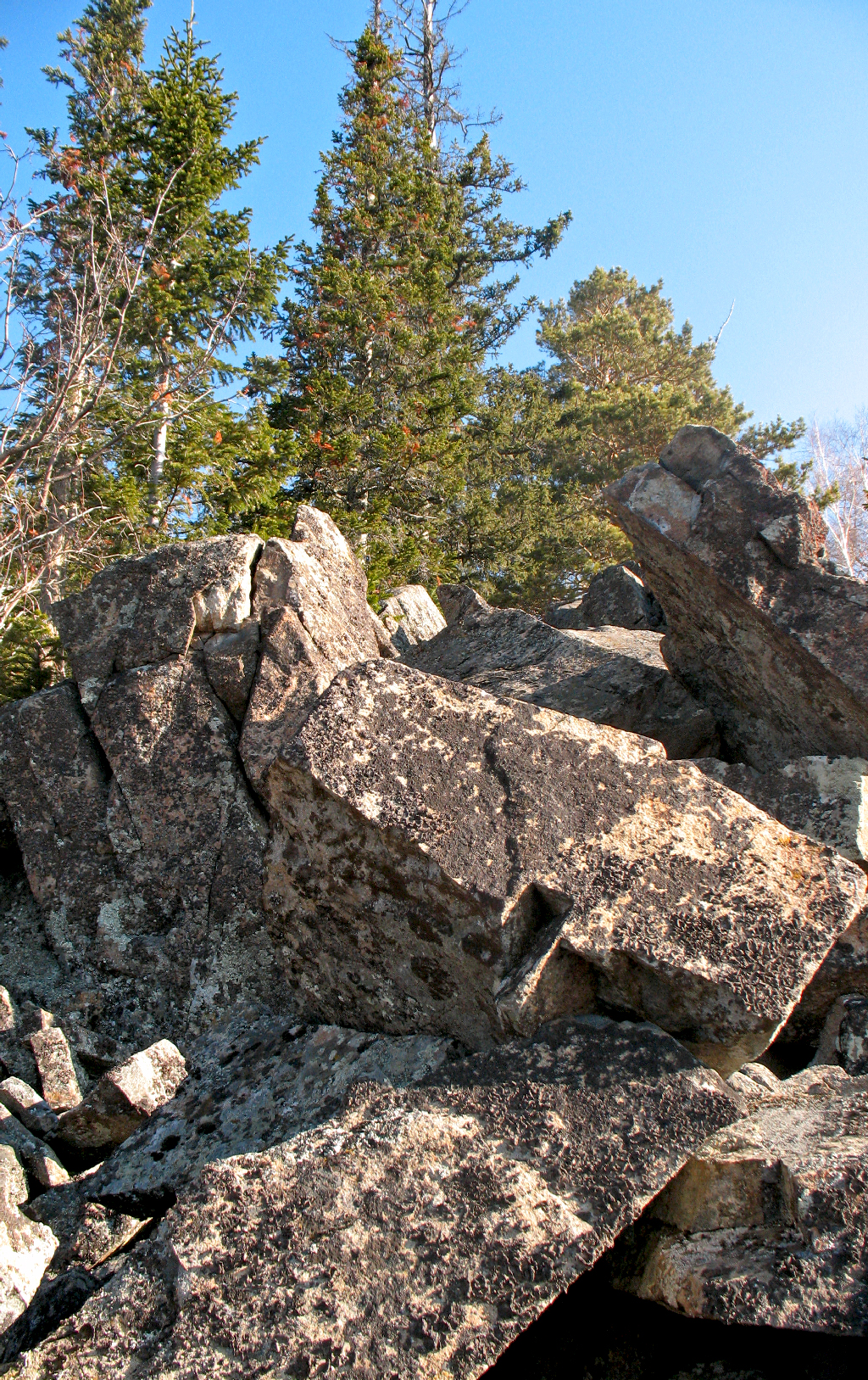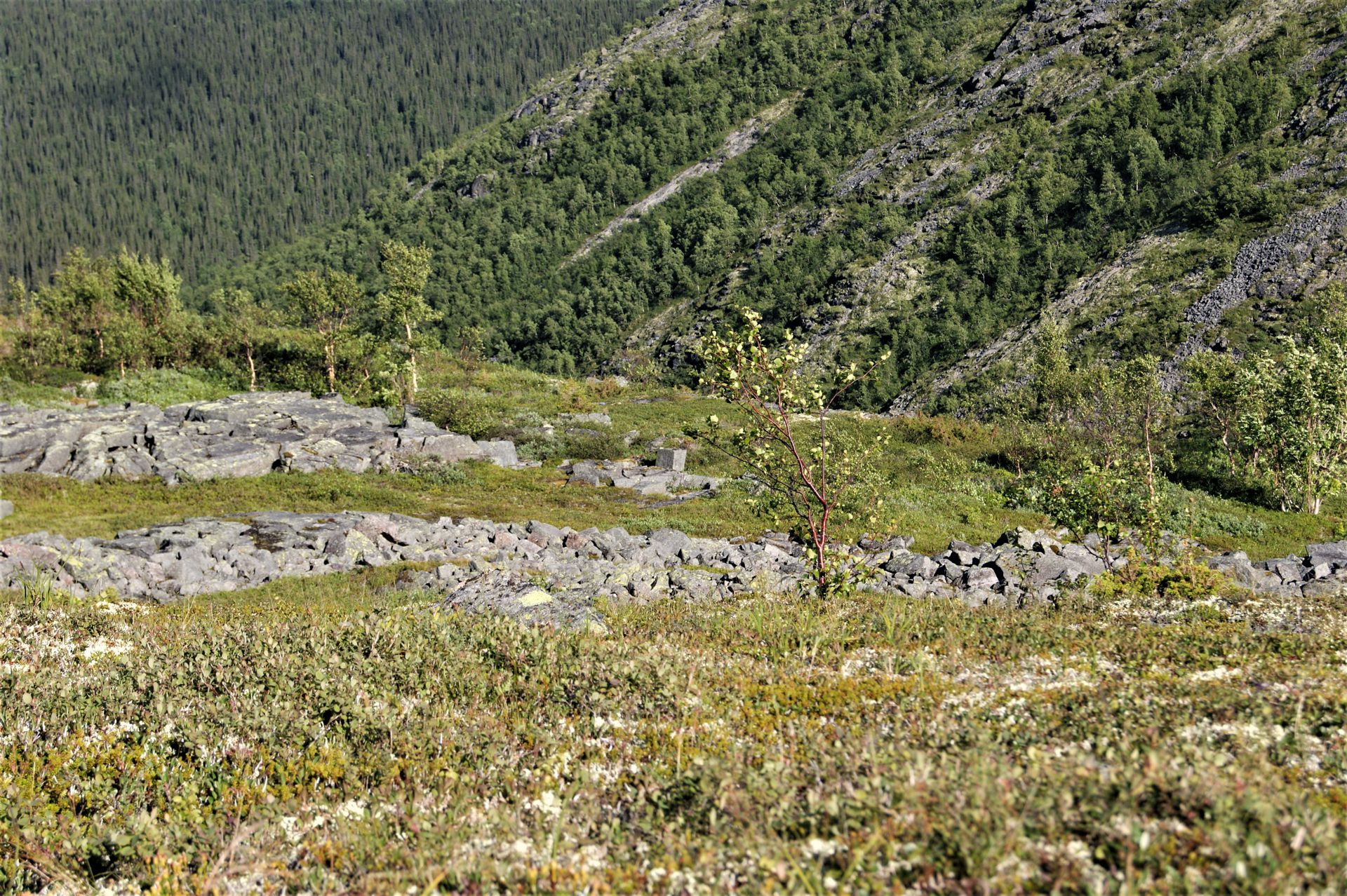 Интересное место было. Узор из камне: круги, соприкасающиеся друг с другом из камней, в центре кругов обязательно мох. На протяжении 100-150 метров все это дело.
