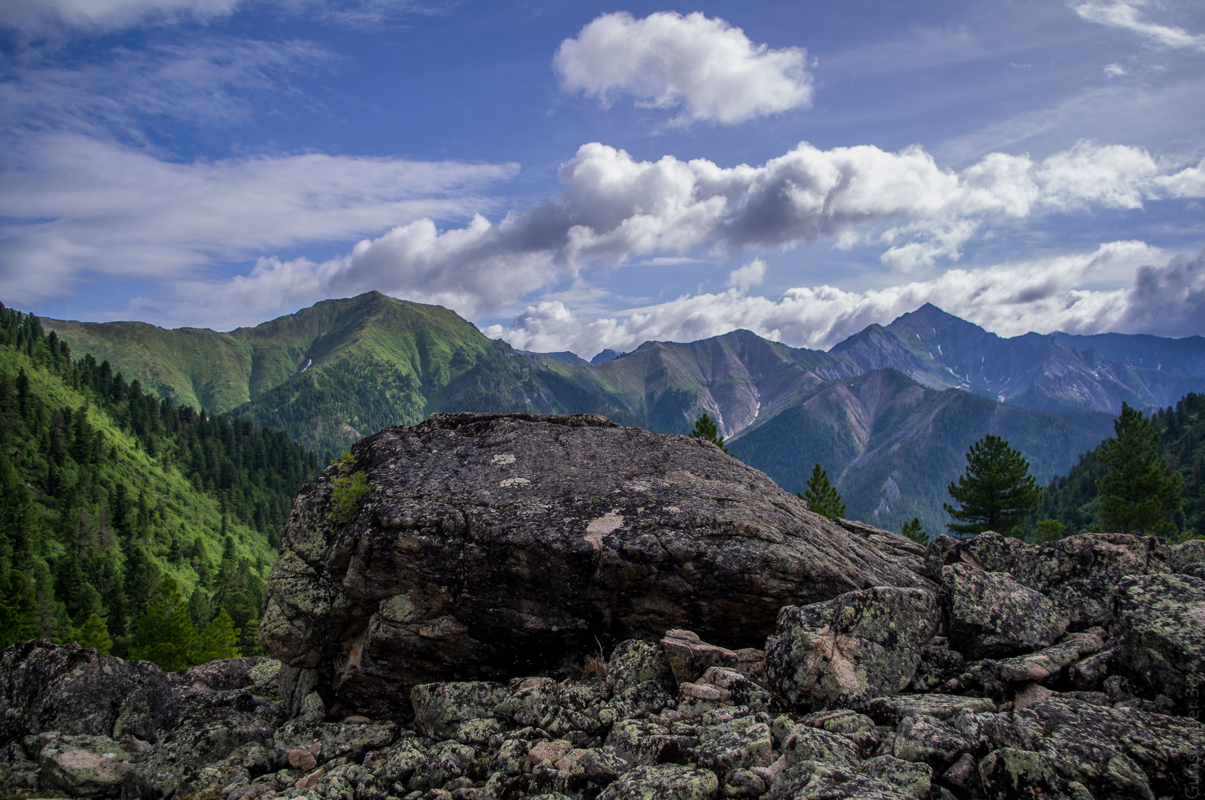 >Постепенно подхожу к месту поворота Гулэми-Икэн. Неожиданно замечаю в 300 метрах от меня молодого медведя. Он уже меня заметил и бежит в мою сторону. Оказывается, бегают медведи быстро, я видел, как бежит олень, так медведь при своем беге запросто его может догнать. Судорожно соображаю что делать, достаю фотоаппарат (а как же без этого), скидываю рюкзак, достаю сигнал охотника, закручиваю патрон. Хлопок, мощный низкочастотный гул, отраженный горами. Медведь встал на задние лапы, развернулся и убежал ещё быстрее, чем приближался. Интересно, какие цели у медведя были. Похоже на то, что сигнал охотника спас жизнь.