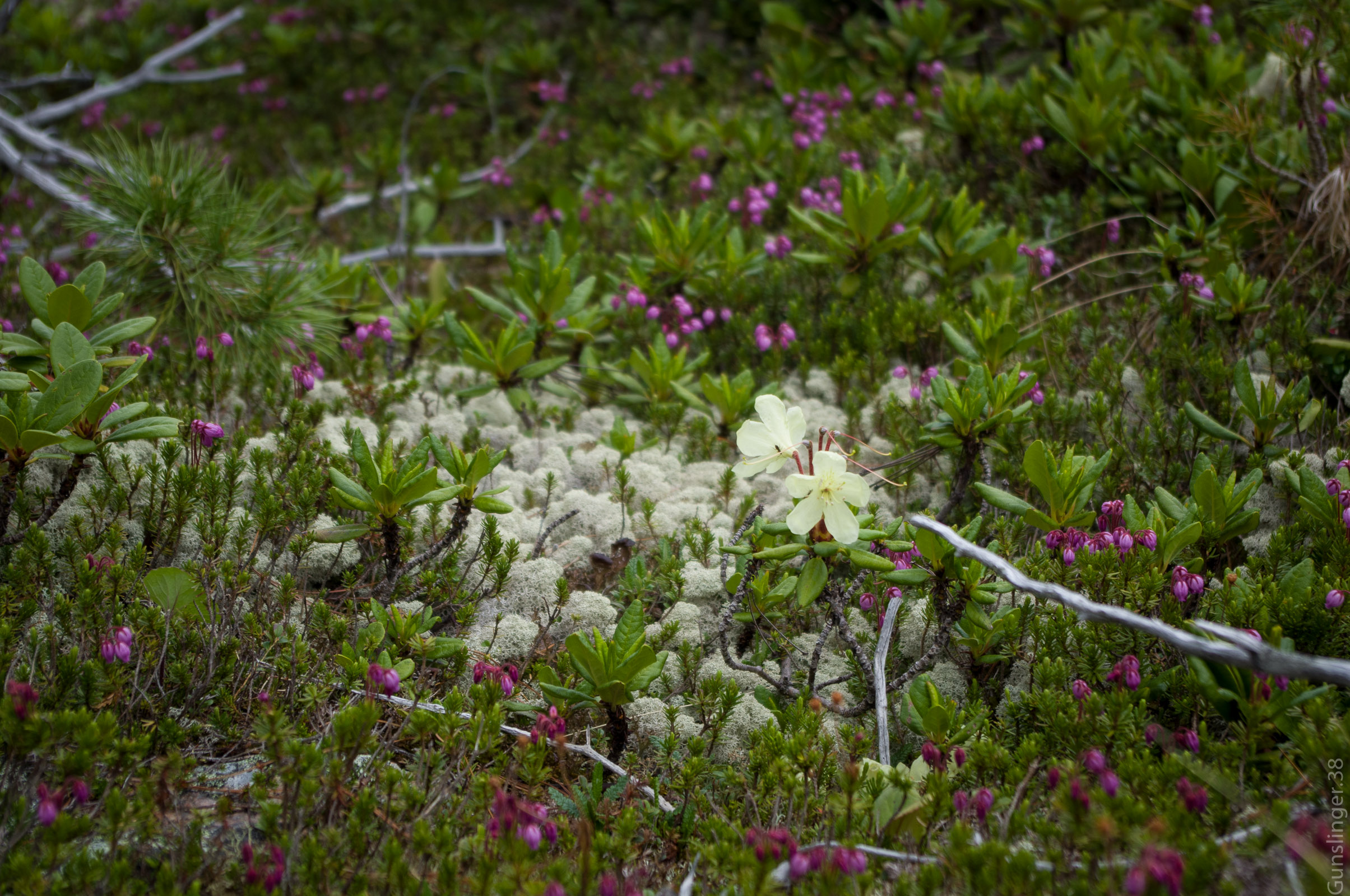 >>32712 >К 14 часам встречаю ещё одного медведя, поедающего голубику. Это был большой взрослый медведь. Он меня увидел, но отказываться от своей поляны не стал. Ухожу на противоположный склон