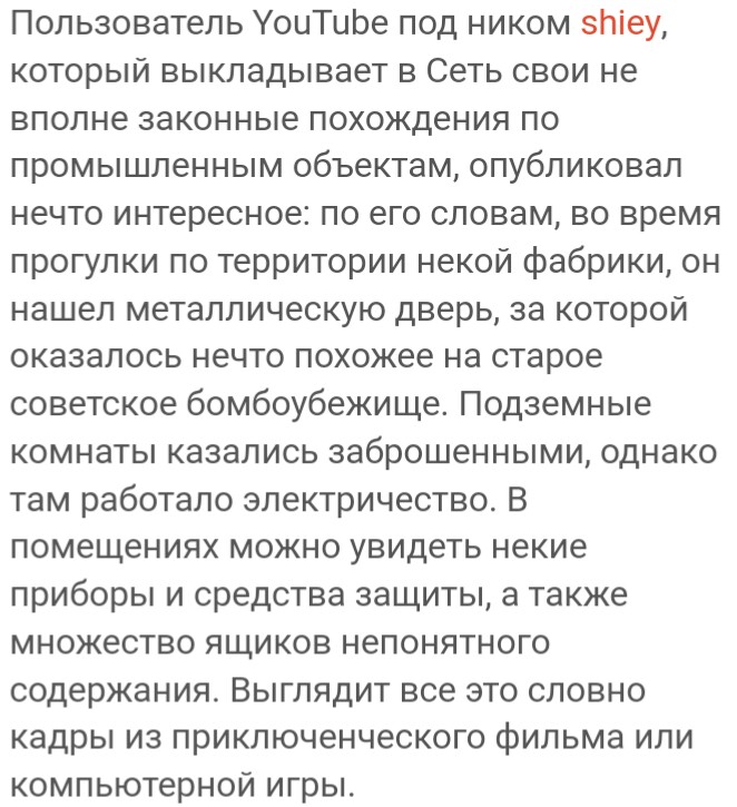 >>40854>>40774 Кавесы, не стоит вскрывать эти тоннели. Вы молодые, прыткие, вам всё метро излазить легко. Это не то. Это не Трансинжстрой и даже не бункера спецслужб. Туда лучше не лезть. Серьезно, любой из вас будет жалеть. Лучше замаскируйте залаз и забудьте что тут писалось про объект. Я вполне понимаю что данным сообщением вызову дополнительный интерес, но хочу сразу предостеречь пытливых - стоп. Остальные просто не найдут.