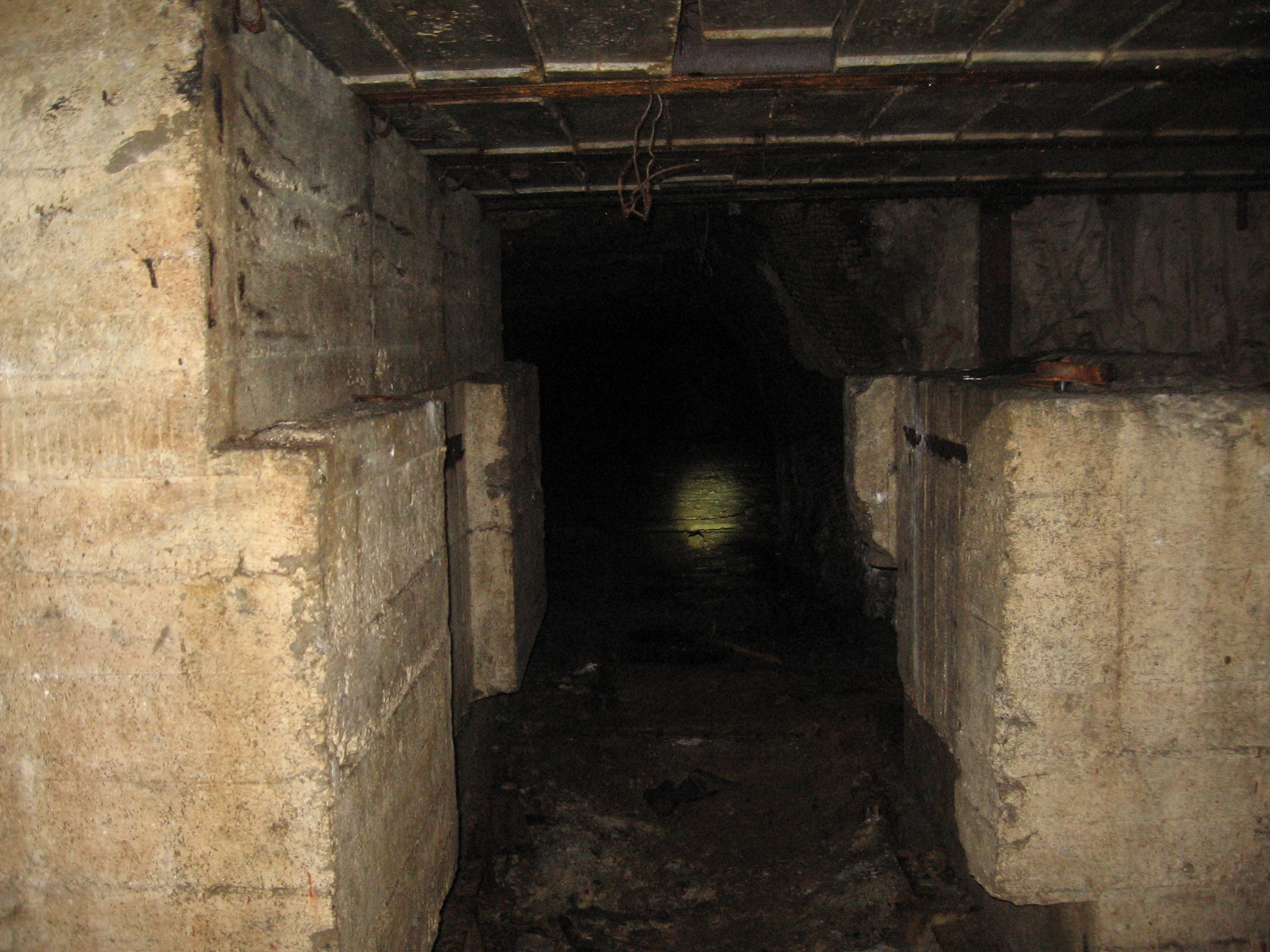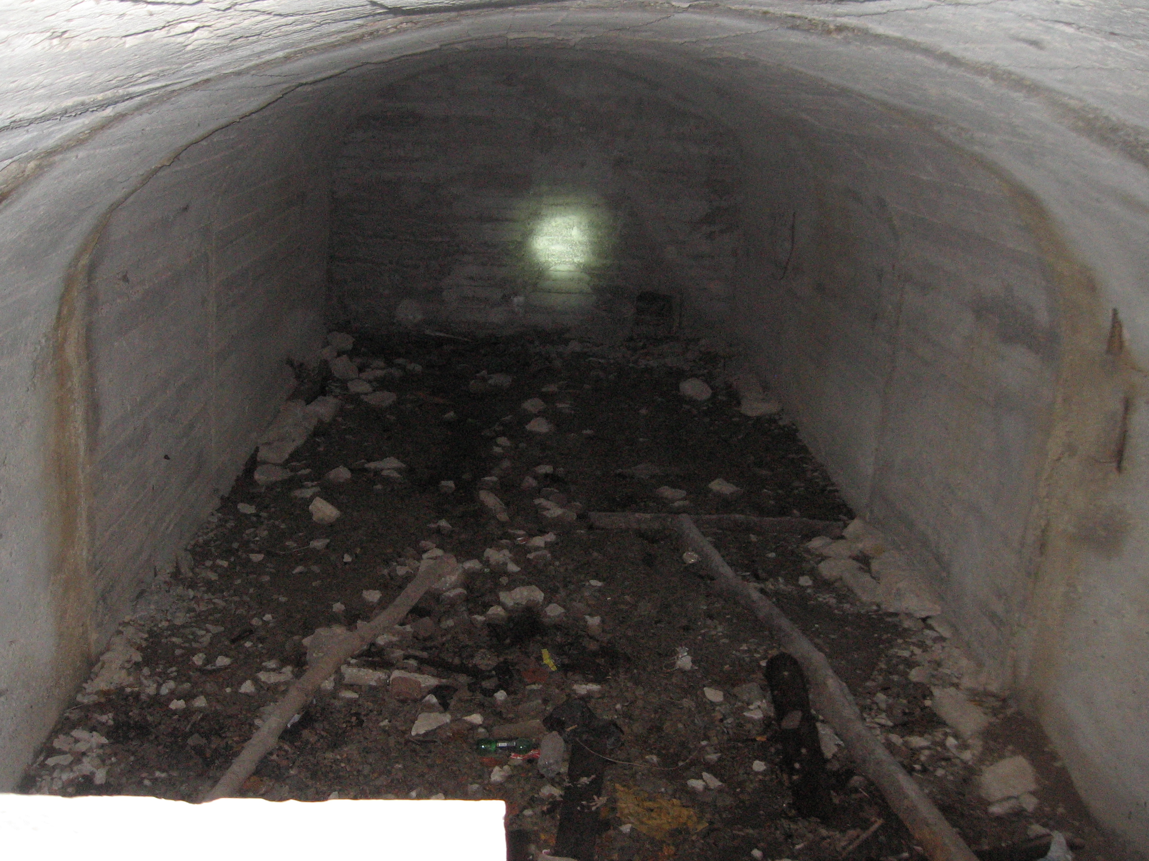 Сбойка с перегоном Садовая - Спортивная и лаз в подплатформенный коллектор. После недолгих споров мы решили сначала лезть в сбойку. Вход в нее был высоко, поэтому пришлось ползти от лестницы в тоннельный пост по стене, цепляясь за провода. Проползли недолго, т.к. загорелся рабочий свет. Оно, конечно неспроста, поэтому мы спрыгнули на пол и стали искать, что же мы могли сорвать. Тут я увидел то, на чем стоял Шустрик в момент включения света и все сразу стало понятно. Небольшая вертикальная планка, а напротив нее вторая. но мокрая. УКПТ!!! Мы юркнули в нашу нычку и стали ждать. Но ни ментов, ни мОнтеров не было. Была тетка - дежурная по станции, которая пришла, посмотрела в тоннель и ушла. Мы выбросились. Потом, вспоминая этот залаз, мы поняли тот факт, что сорвали УКПТ уж слишком извращенским способом. Минимум пять раз прошли между планками, на одну нассали, на вторую наступили. Неплохо для начала.