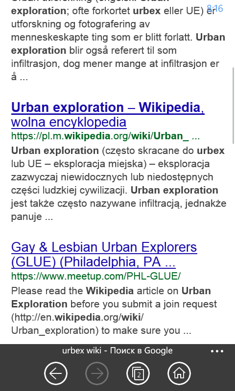 Будь готов поступиться одеждой, напрочь убитой при очередной полазке. Камуфляж практичен в плане малозаметности на нем пятен грязи, но довольно палевен при перемещении по городу. Лучше не надевать больше одной камуфляжной вещи за раз. Мимокрокодилов разумеется, меньше по ночам, но при зопале в малосерьезном месте ночью не удастся прикинуться дурачком уровня "да я поссать зашел сюда, бля буду, без задней мысли". Зато днем лучше видно всякие потенциальные опасности и неожиданности, но и тебя лучше видно, если это подступы к объекту или надземный объект. Техника SRT - полезное и важное умение достичь тех мест, где уже нет лестниц. Иногда без него никак вообще. Каска под землей скорее атрибут субкультуры, нежели насущная необходимость, хотя каждый решает это для себя сам. Некий минимум физподготовки тоже лишним не будет, ибо есть места где нужно долго идти в три погибели согнувшись или лезть на руках или нечто подобное, будучи жиробасом или девочкой-волшебницей, сделать тебе это будет затруднительно. Будь морально готов к тому, что 3/4 времени ты будешь искать объекты на поверхности, а не быть в объектах внизу (если это дело обстоит как-то иначе, значит ты таскаешься по помойным баянам). Не проси привязок на форуме, это всегда проще всего - не ищи легких путей, они, как правило скучные. Не устраивай гейпарады - если полазка более чем из 4 человек, то это уже ебаный карнавал долбоёбов, где каждый ломится и шумит аки лось. И пиздоболит как школота в доте. Банально смотришь не объект, а за тем, чтобы никто ничего не натворил и не изуродовался. Не забывай про доп. питание к своим источникам света, это важно. При поездке к далеко располагающемуся объектом неблагоразумно парковать машину рядом с залазом, лучше в полуквартале по соседству.