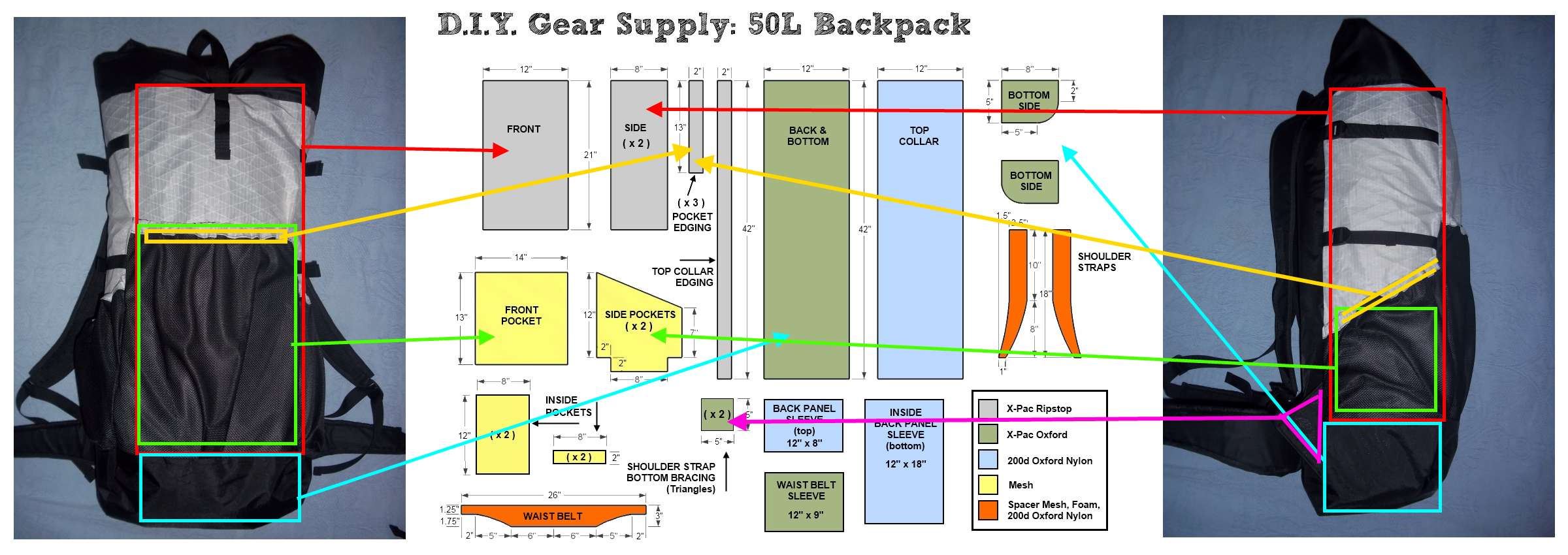 Здесь мы будем обсуждать создание своего экипа, делиться выкройками, выяснять что лучше коверлок или прямострочная машина, x-pac или cuben, роллтоп или водонепроницаемые молнии, чем клеить тенты и швы, где заказать топовые материалы, хвастаться самодельными рюкзаками, квилтами и укрытиями, которые стоили бы $400 на американском рынке, и многое другое.