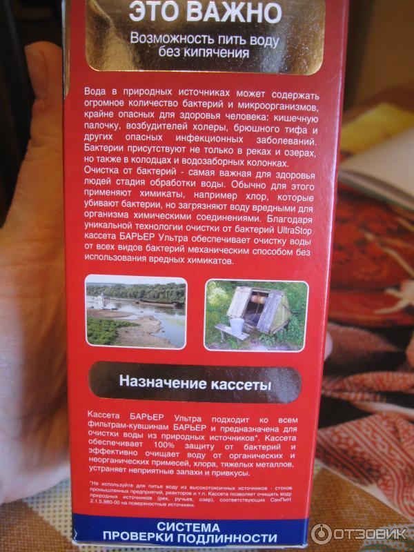 В такой конструкции можно использовать любой фильтр, в данном случае используется фильтр барьер ультра, его цена около 600р. Почему барьер ультра - он защищает от бактерий на 100%, так как является мембранным фильтром. То есть, через него можно фильтровать даже воду из болота. Так-же его плюс в огромном заявленном ресурсе - 300 литров. К сожалению есть и минусы, фирма заявляет о 2 месяцах использования фильтра, но как я вычитал из форумов - это скорее перестраховка и смело можно пользоваться месяца три, чего с запасом хватит на лето.