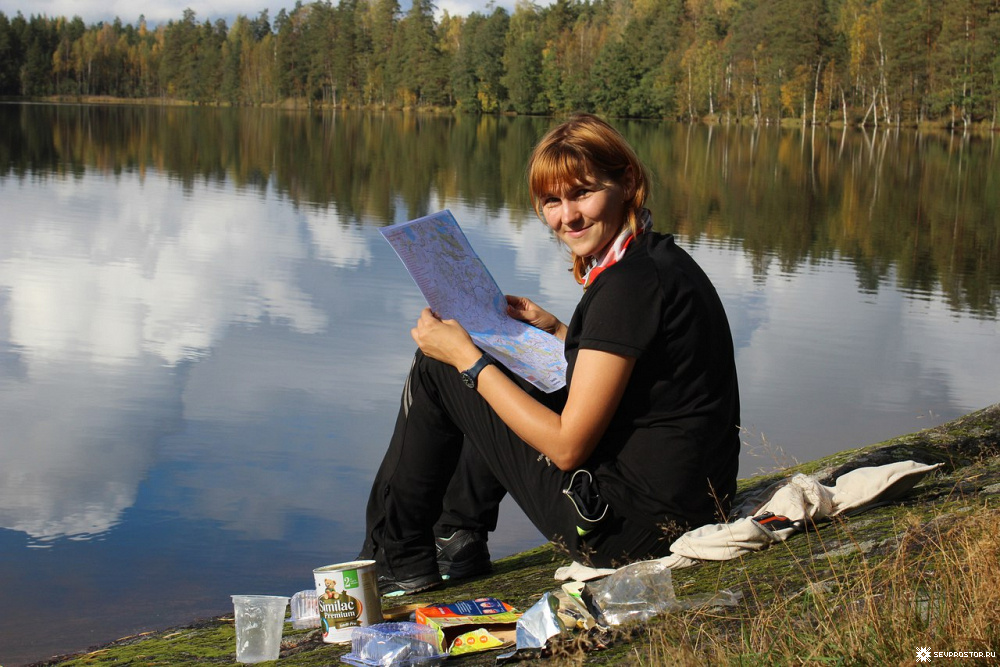 >Утром босиком на несколько раз снова обхожу берег. Сапог нет. Как в воду канули. Были, да сплыли. Прийдётся идти босиком. На мне двое носок – треккинговые (те самые, которые продаются только в турмагазинах за 800-1000 р.) и шерстяные, шерстяные напрочь стираются о камни уже к вечеру, переодеваю их нижней стороной кверху, верхняя сторона тоже стирается. Нахожу консервную банку (какая радость – консервная банка у старого кострища на берегу! Свеженькая, еще не истлевшая, как предыдущая), разрезаю свою футболку «River Kwai», делаю портянки, приматывая к ногам этими портянками толстый слой мха – мох смягчает острости земной поверхности. Иногда я захожу в лес на оленьи тропы, там нет острых камней, но на этих тропах портянки сваливаются, и долгое время у меня уходит на изобретение особого способа заворачивания.