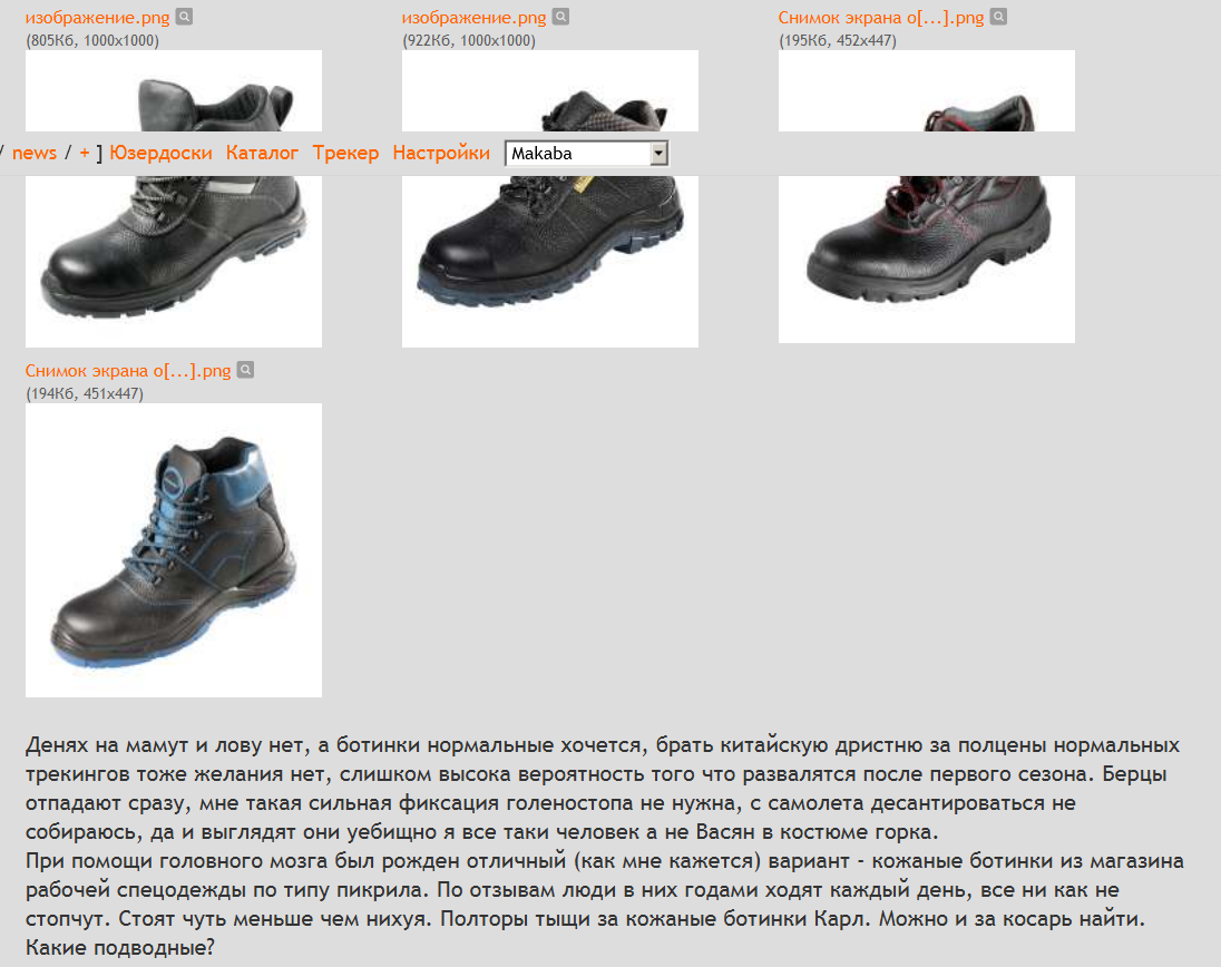 Денях на мамут и лову нет, а ботинки нормальные хочется, брать китайскую дристню за полцены нормальных трекингов тоже желания нет, слишком высока вероятность того что развалятся после первого сезона. Берцы отпадают сразу, мне такая сильная фиксация голеностопа не нужна, с самолета десантироваться не собираюсь, да и выглядят они уебищно я все таки человек а не Васян в костюме горка. При помощи головного мозга был рожден отличный (как мне кажется) вариант - кожаные ботинки из магазина рабочей спецодежды по типу пикрила. По отзывам люди в них годами ходят каждый день, все ни как не стопчут. Стоят чуть меньше чем нихуя. Полторы тыщи за кожаные ботинки Карл. Можно и за косарь найти. Какие подводные?