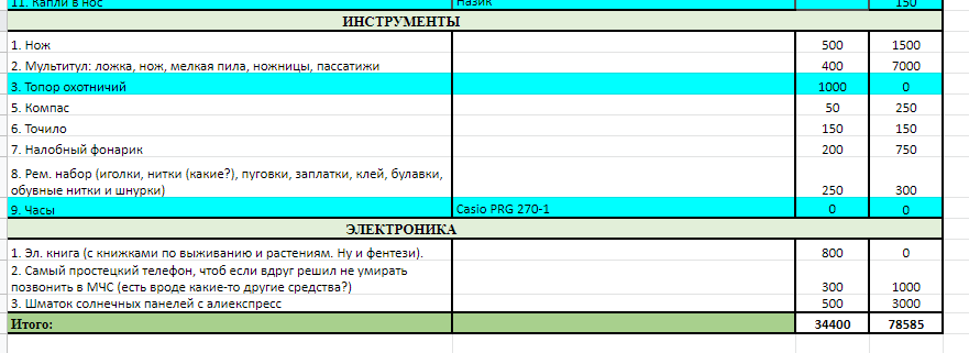 Тем временем список эквипа уже не умещается на 2ух скрина, пиздос. И вес достиг под 40к, а стоимость - под 80, хотя создавал тред с целью все то уменьшить. Кто-нить помогите урезать все то говно, что я собрал. Алсо, посоветуйте конкретных моделей эквипа, не отмеченного никаким цветом.