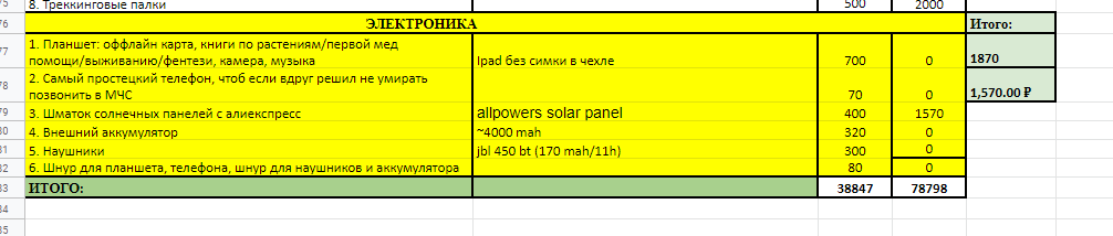 Поэтому идеальный вариант для ОПа, имхо, это забить на солнечные панели, взять максимум ёмкий повербанк и периодически контактировать с цивилизацией с целью зарядки его от розетки.