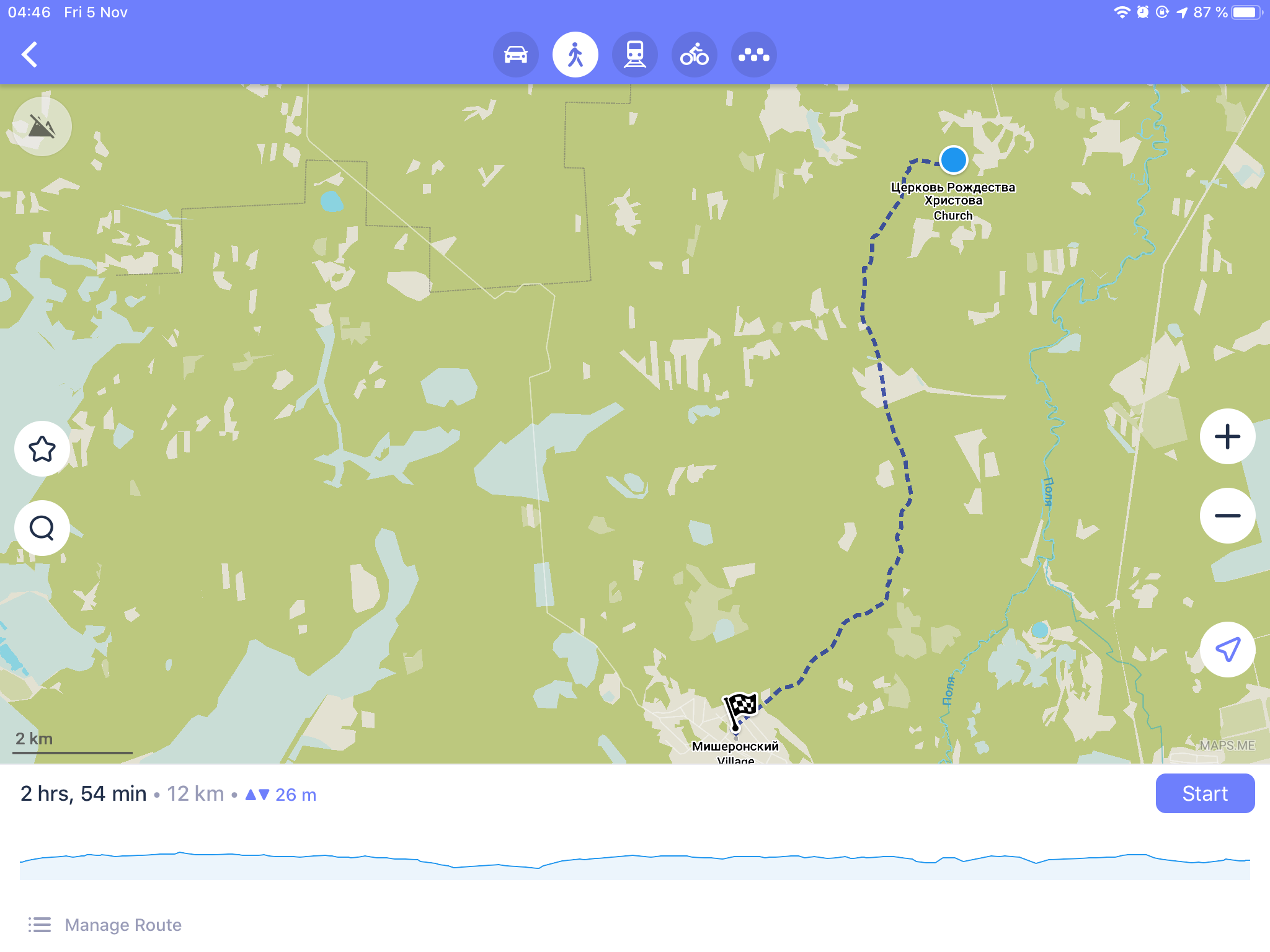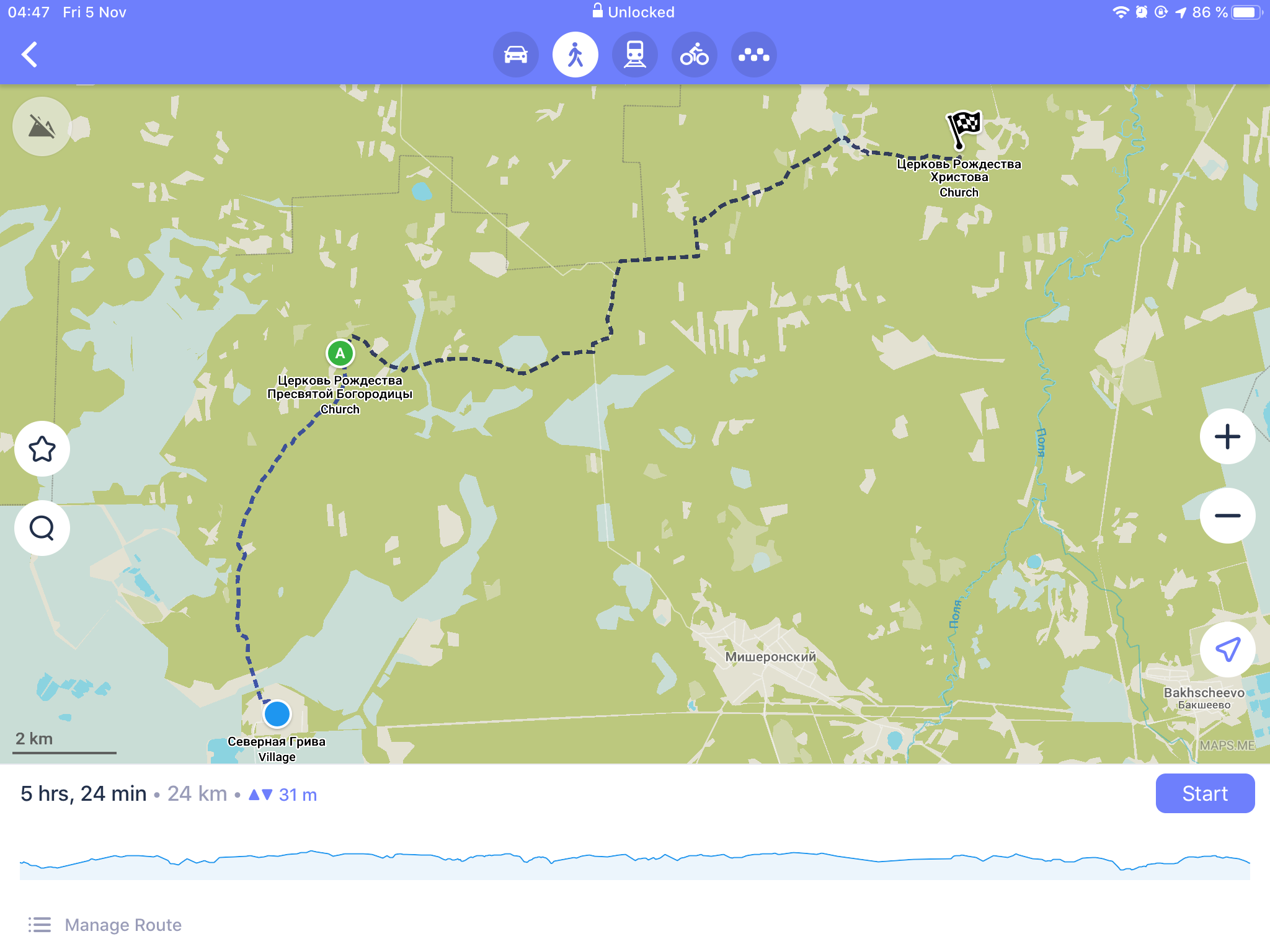 >>86246 Далее пошли проблемы. С моей идеей Х заночевать в церкви мне пришлось пилить оставшиеся 8км ночью, так как в 5 вечера уже стемнело. При этом надо было пересечь 2 болота каждое метров 300, одно по голень, другое по колено. Еще начался дождь, который шел с вечера всю ночь. Если первое болото прошел без приключений, то во втором уже были проблемы. Навигатор с уверенностью заявлял, что где-то там брод, но, разумеется, никакого брода среди ночи я не нашел. Пришлось прыгать по кочкам, и все равно пару раз необходимо было идти по колено в воде. Наученный горьким опытом ботинки я не снимал. По итогу, когда вышел из болота, я промок по колено и в ботинках хлюпало. Пока проверял, не проебал ли я что-либо, меня уже начало трясти от зарождающейся гипотермии (на улице было градусов 5). Так как я не мог зажечь костер из-за дождя, принял ответственное решение крейсерской скоростью допиздовать оставшиеся 2.5км до церкви, таким образом поддерживая относительное тепло тела, и отогреться нормально уже там.