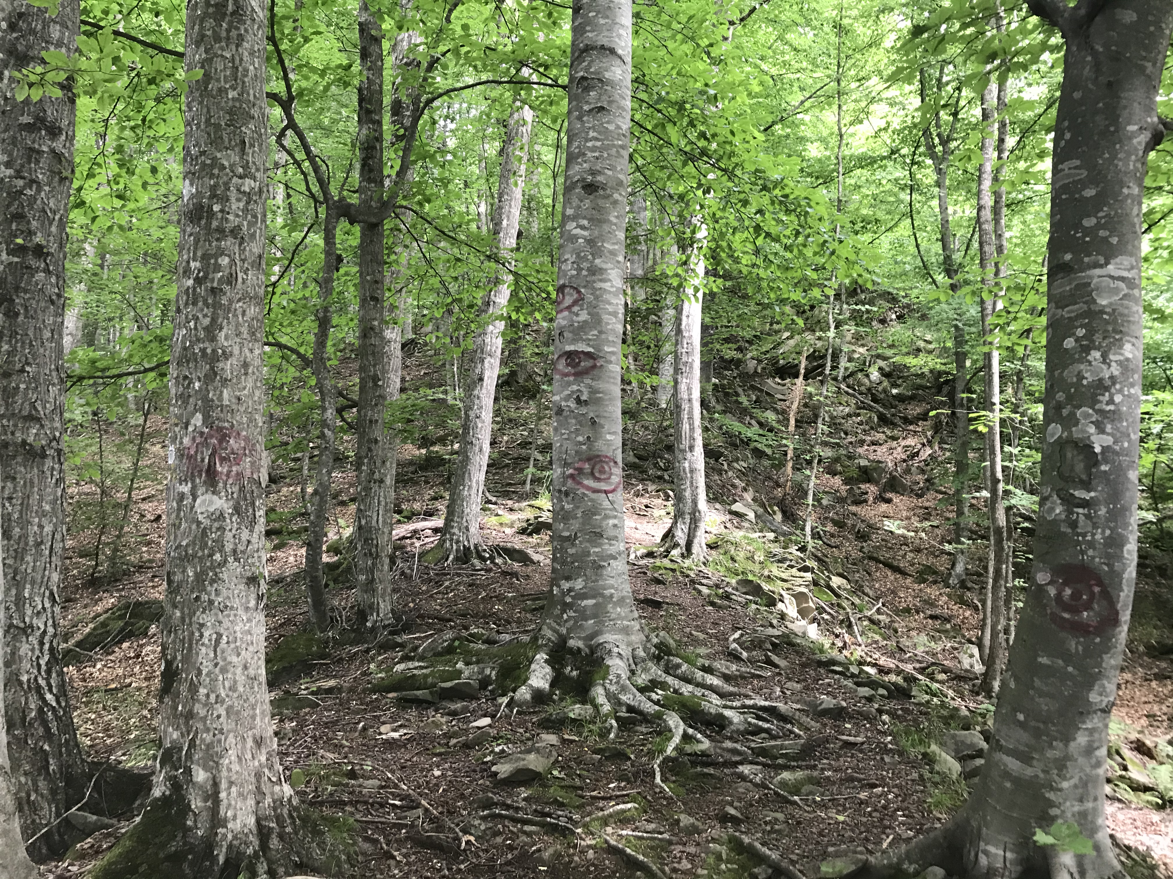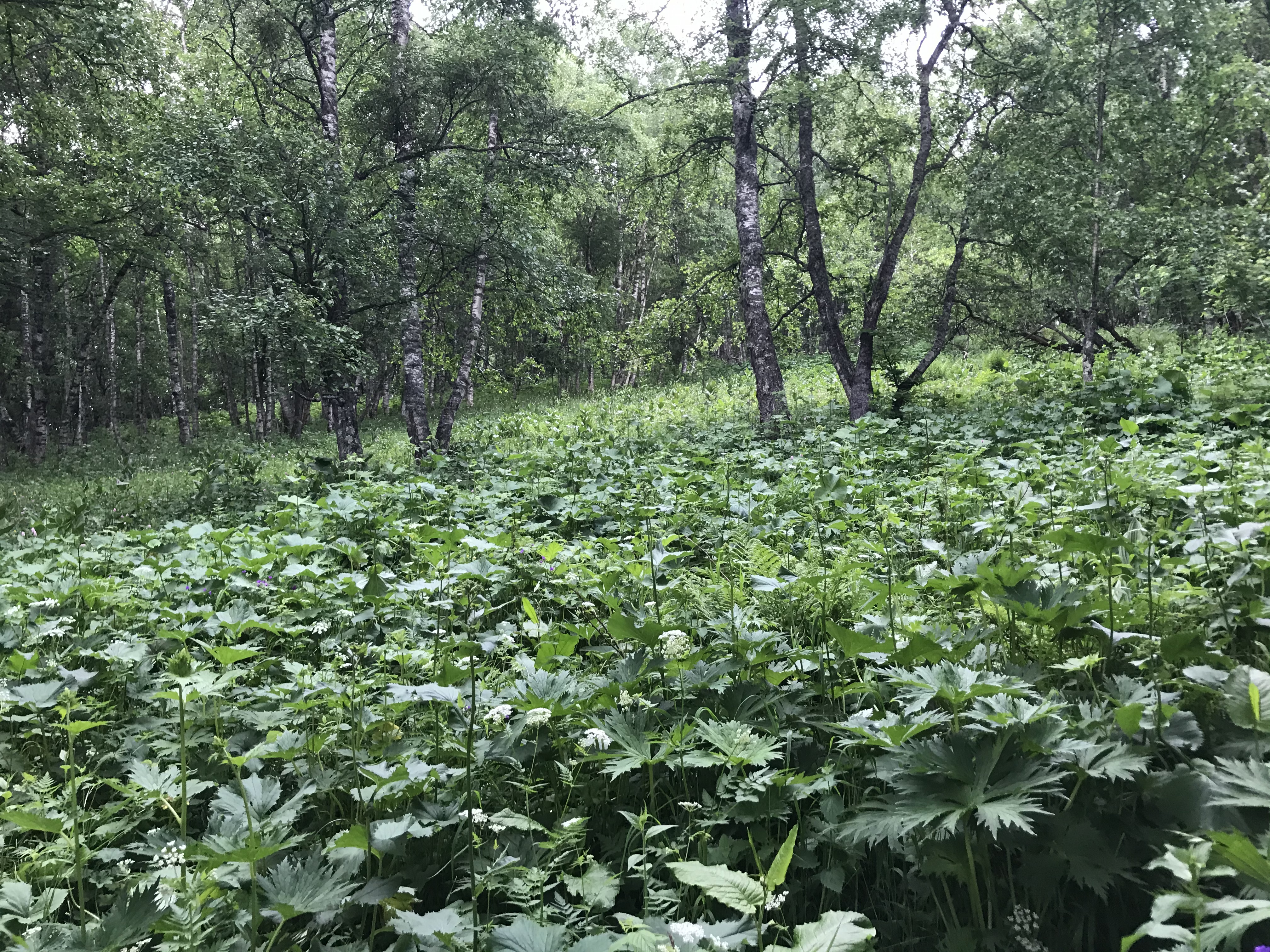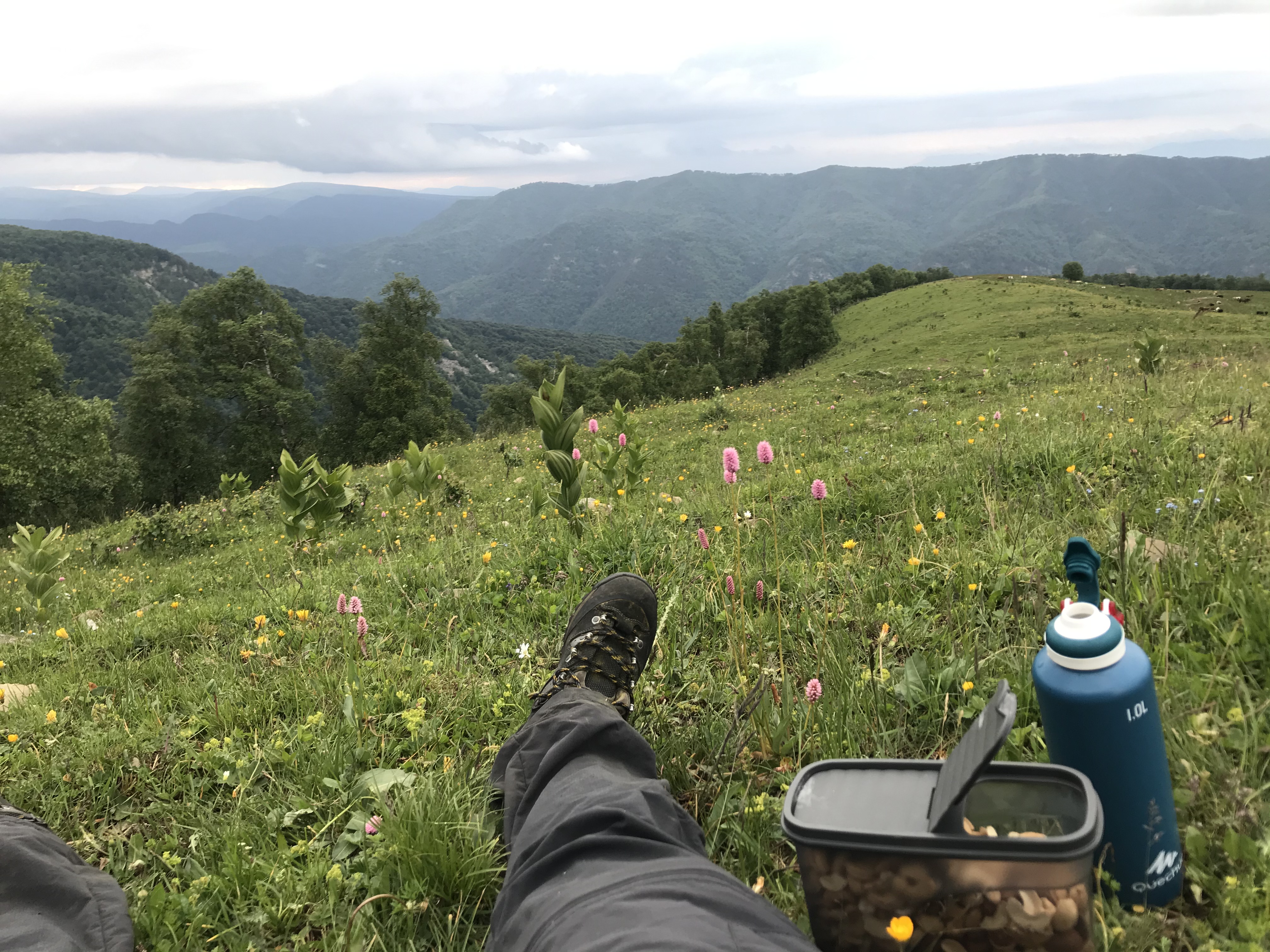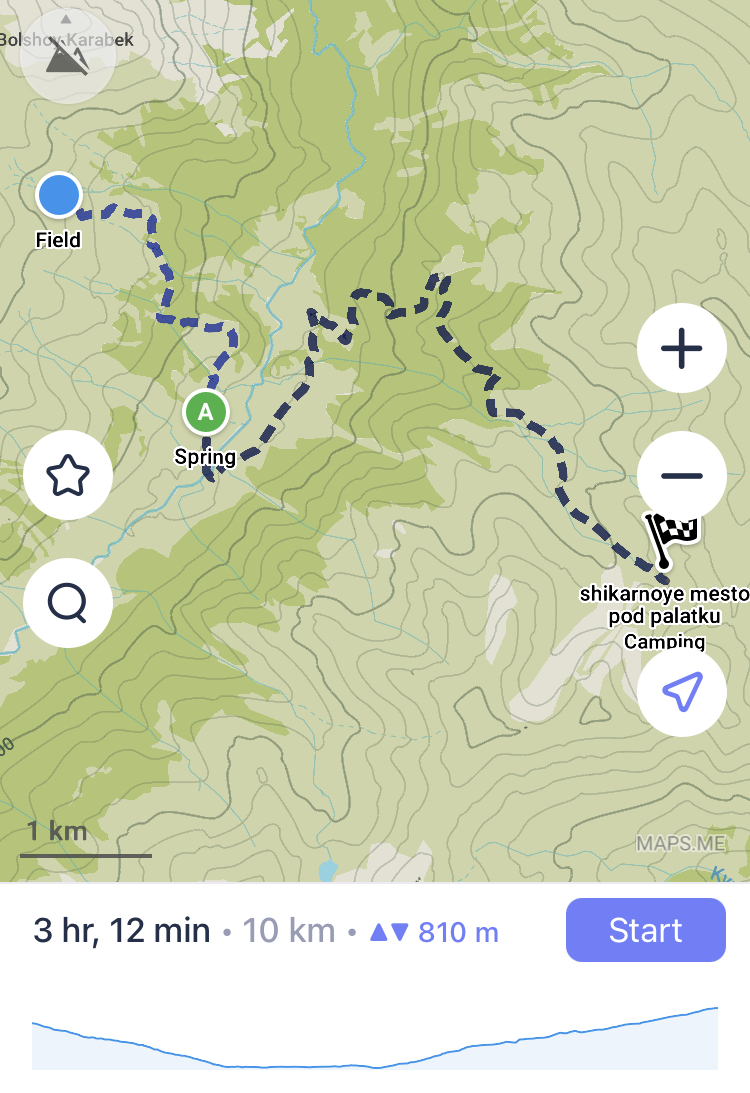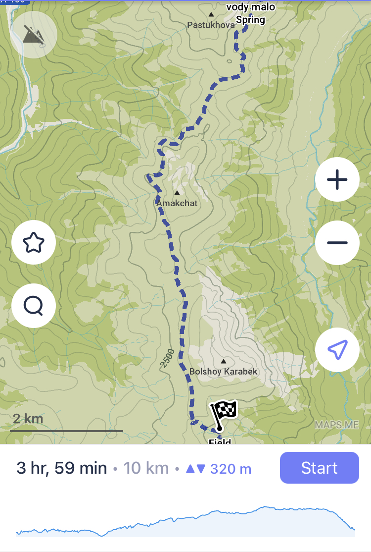 День 1. Самый сложный. ~15 км, 1.2км в высоту Изначально планировал отдыхать на Архызе, но там оказался не отображающийся на яндекс картах заповедник. Пришлось менять маршрут, автостопом доехал до Нижнего Архыза, и оттуда решил идти до Теберды. По итогу начал маршрут в 2 дня, и уже нагулял по дорогам километра 3. Буквально в 100 м от Нижнего Архыза в лесу какой-то ребенок изрисовал деревья (пик 2). Далее туртропа почти сразу исчезла и пришлось лезть в гору, продираясь сквозь заросли кустов и крапивы. Спустя где-то километр туртропа вернулась и дальше уже шел по ней. Пока она опять под конец не затерялась, но там хоть набора высоты особо не было (пик 3). Однако, тут я повстречал семейку кабанов. Было 2 мелких светленьких кабанчика и 1-2 больших черных. Увидел я их в метрах 50 от себя, все, кроме 1 черного сьебали, а черный угрожающе похрюкивал в мою сторону, пока я пятился. В итоге разошлись миром, хоть мне и пришлось сделать крюк в полкилометра. Далее вышел на луга на пастушью территорию. Начиная с этого момента на протяжении всего маршрута меня будет окружать море коров и говна. Вечерело, первое стадо я обошел и сделал привал (пик 4), но второе стояло прямо на туртропе, и коровы сами от меня разбегались, хз почему, так что шел напрямик. Пока коровы не собрались в большое, блять, стадо, и не пошли стадом на меня. Пришлось опять спускаться с туртропы (чуть не ебнулся пока уебывал быстрым шагом), за мной они не пошли, сделал очередной крюк и вернулся на тропу. Спустя каких-то пару сотен метров на меня побежали три большие сторожевые собаки. К счастью, это явно были не бродячие, а натренированные, потому они держали от меня дистанцию, окружили в полукольцо и лаем и следованием за мной выдавливали с пастушьей территории. Так как мне все равно надо было оттуда уходить, проблем не было. Как вышел с пастушьей территории, которая с этой стороны была огорожена наэлектризованной проволокой (просто 3 линии, чтобы скот не уебал, разряд невысокий был), стемнело. Тут меня ждал сюрприз, в моем налобном фонарике сдохли батареи, так что пришлось идти с телефончиком. Еще и морось пошла. Последний километр шел очень тяжело, останавливался каждые 150 метров, садился и просто вырубался мин на 10. Поставил бы палатку прям где стоял, но очень хотелось пить, потому пер до родника дальше. Рек рядом, несмотря на пиздливый навигатор, не было. Дошел, попил, с трясущимися ногами еле поставил палатку прям на туртропе, спал в обнимку с рюкзаком, чтобы не скатиться со склона.