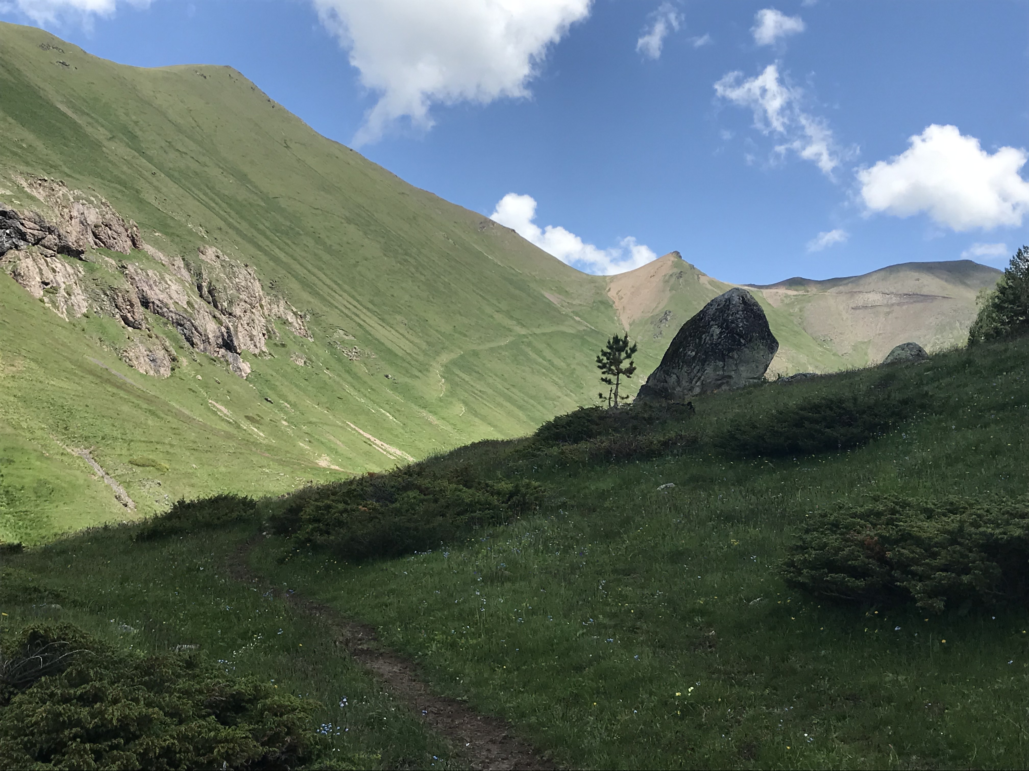 День 5. 25 км, 2 брода и перевал 2764м. Второй по сложности день. Утром дед дал сдачу 600р (т.е. он себе в минус надавал мне еды, лол), я собрался и пошел. За мной увязалась его собака, которая отпугивала от меня коров и была со мной на протяжении всего маршрута. Турмаршрут от турбазы до Теберды куда более ухоженный, коров почти не было, и даже мостики через реку были. Выбрался из леса, прошел луга, добрался до брода (видрил 1), прошел, не снимая ботинок, так как в рот ебал терять обувь опять. Со скоростью черепахи поднялся на перевал (видрил 2, пик 2 - издали) и охуел от машин там. Планировал там остановиться, но раз уж была дорога, машины и всего 3 часа дня, пошел до Теберды. Пришлось еще через 1 брод перейти. Шел без приключений, отключив мозг и не думая о дороге. Из интересного - дорогу перебежал заяц и собака за ним погналась, но проебала, и какой-то подпивас с семьей на ниве, который ехал в сторону перевала, спросил, где море (это кавказ, блять, какое море, ты в горах!). Последний пик - лес уже в Теберде. Дошел до Теберды, кинул собаке кило мяса и ушел в отель, а на след день уехал.