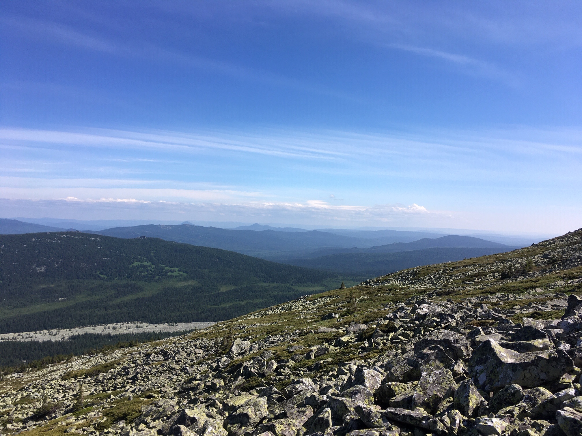 А мы сходили на Ямантау. Шли от Отнурка по азимуту через лес, чтобы максимально избежать егерей. Кому надоело ходить по тропам - самое оно - сплошные завалы, высокая трава (в ней под ногами не сразу заметные камни и бревна), отовсюду торчащие ветки, ямы, канавы, ручьи, болота, километры курумника, брод через Инзер (по колено), комары, все прелести жизни. Идти пиздец тяжело, скорость невысокая и очень устаешь. Но было круто.