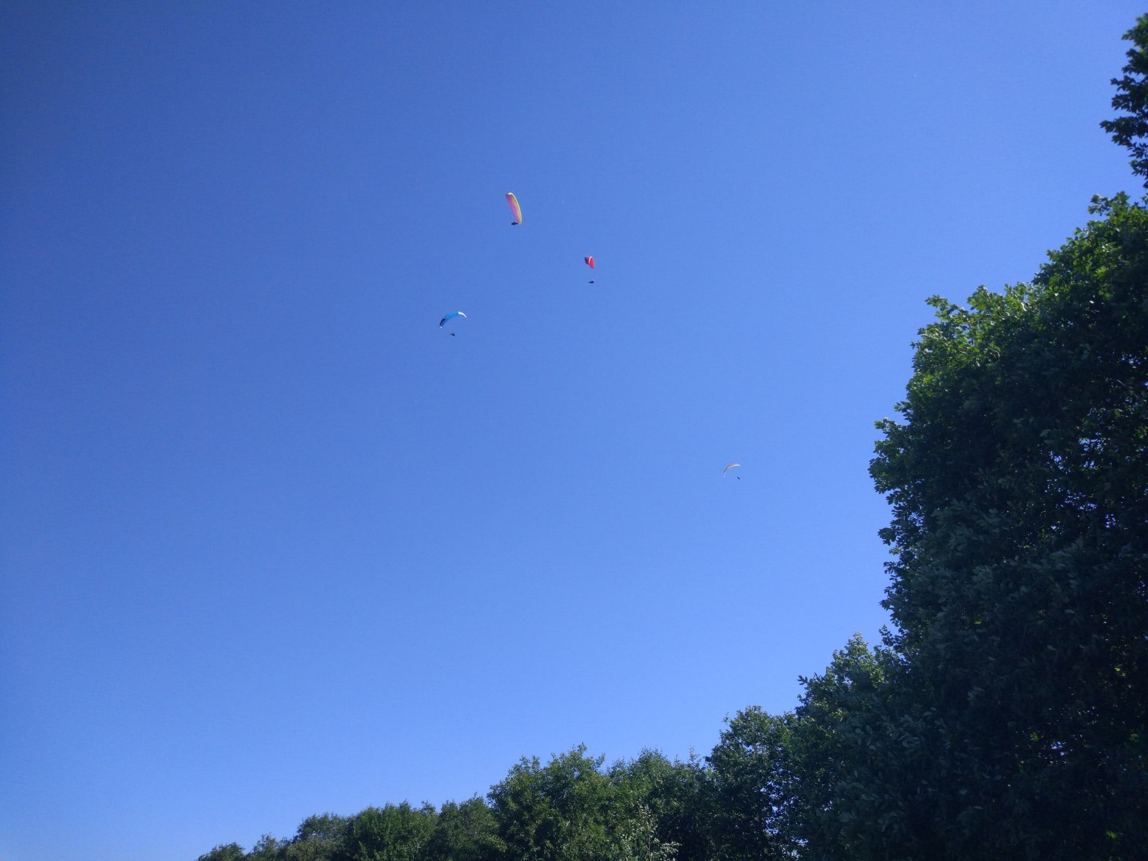 Вообще необычно смотрится со стороны - едешь по сельским дорогам, а в небе время от времени крылья просматриваются по-одному и группами. И люди с большими рюкзаками на обочинах. Интересно, как местные к этому относятся.