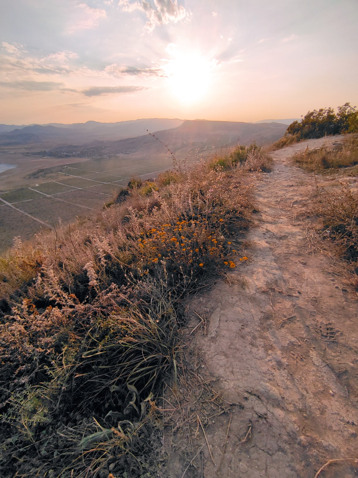 Дорога вверх – я ездила половину ее на велосипеде. Но дальше - бездорожье. А еще дальше – только пешком. Мне дали оборудование. И по каменным ступенькам еще почти километр. А там вершина. Почти плоская маленькая площадка с небольшим наклоном. А за ней – обрыв. Примерно 1800м. И далеко внизу в дымке – Монако.