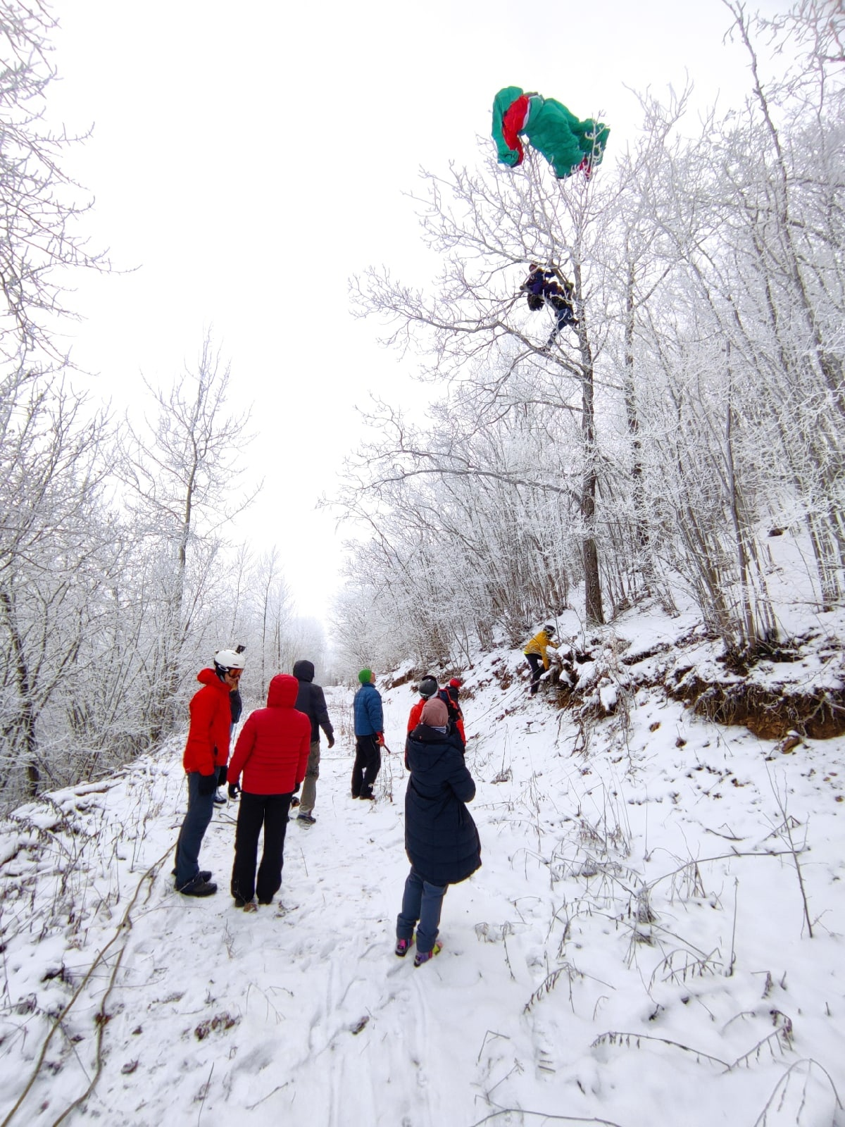 Поучился кидать запаску на семинаре. Весело было. Нам на горнолыжке выделили троллей, цеплялись к нему в подвеске и ехали. Охуел с усилия вытаскивания конверта на своей подвеске. Меня, в принципе, предупреждали что там Параавис чет дохуя липучек налепил, в итоге вырвал только со второго рывка.