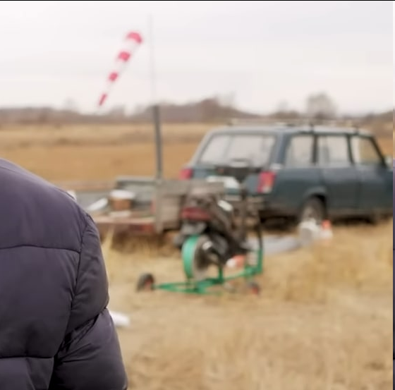 3. Третий вариант это малинка: весь трос размотан изначально, крепится к машине через динамометр, показания тяги выведены на табло или манометр водителю. Водитель едет и регулирует усилие тяги скоростью машины. Колебания гасятся за счет длинного упругого троса, обычно используется 1 км. Соответственно трос должен быть упругим, самый ходовой вариант - коломенский трос, они прямо делают специальные для полетов.