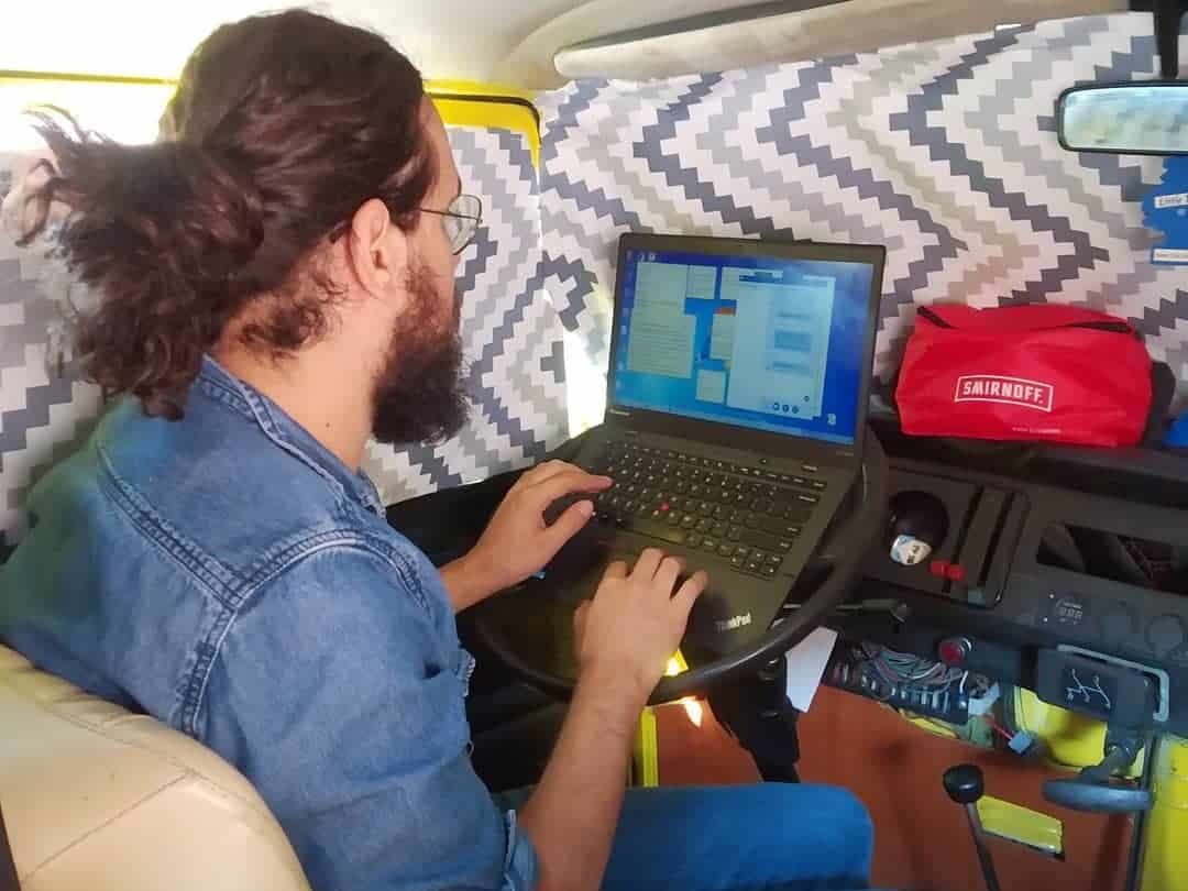 Алсо, а не возникает у тебя проблем с работой? Ты же не в машине работаешь, надеюсь. Нужно рабочее место. Не возникает с этим проблем в лесу, раз у тебя ни стола, ни стула ни света?