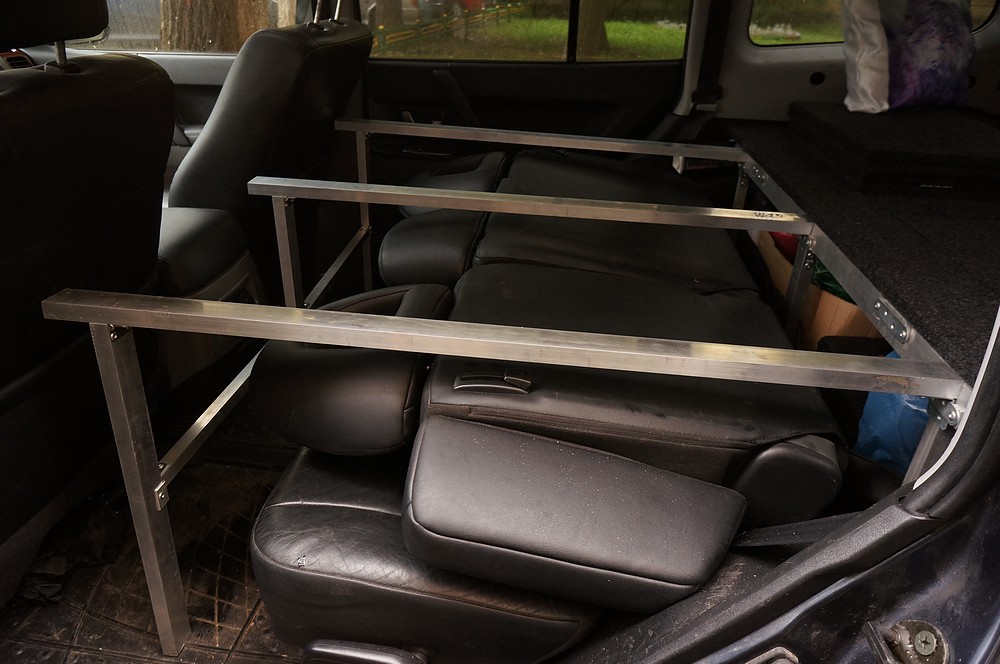 >убрал второе пассажирское сиденье полностью и спинку заднего дивана Интересный вариант. Но я бы так не стал делать, ведь проще тупо опустить спинку переднего пассажирского сиденья и лежбище готово. Если же переднее сиденье убрать, то придется убирать и задние сидения, чтобы был один уровень. Останусь с одним водительским в таком случае, а еще и придется из чего-то сооружать лежбище.